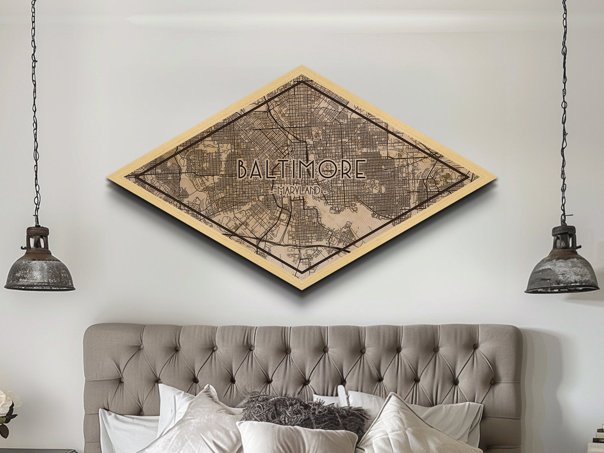 Baltimore Diamond Shaped City Map, Custom Diamond Shaped Wall Art, City Map Canvas