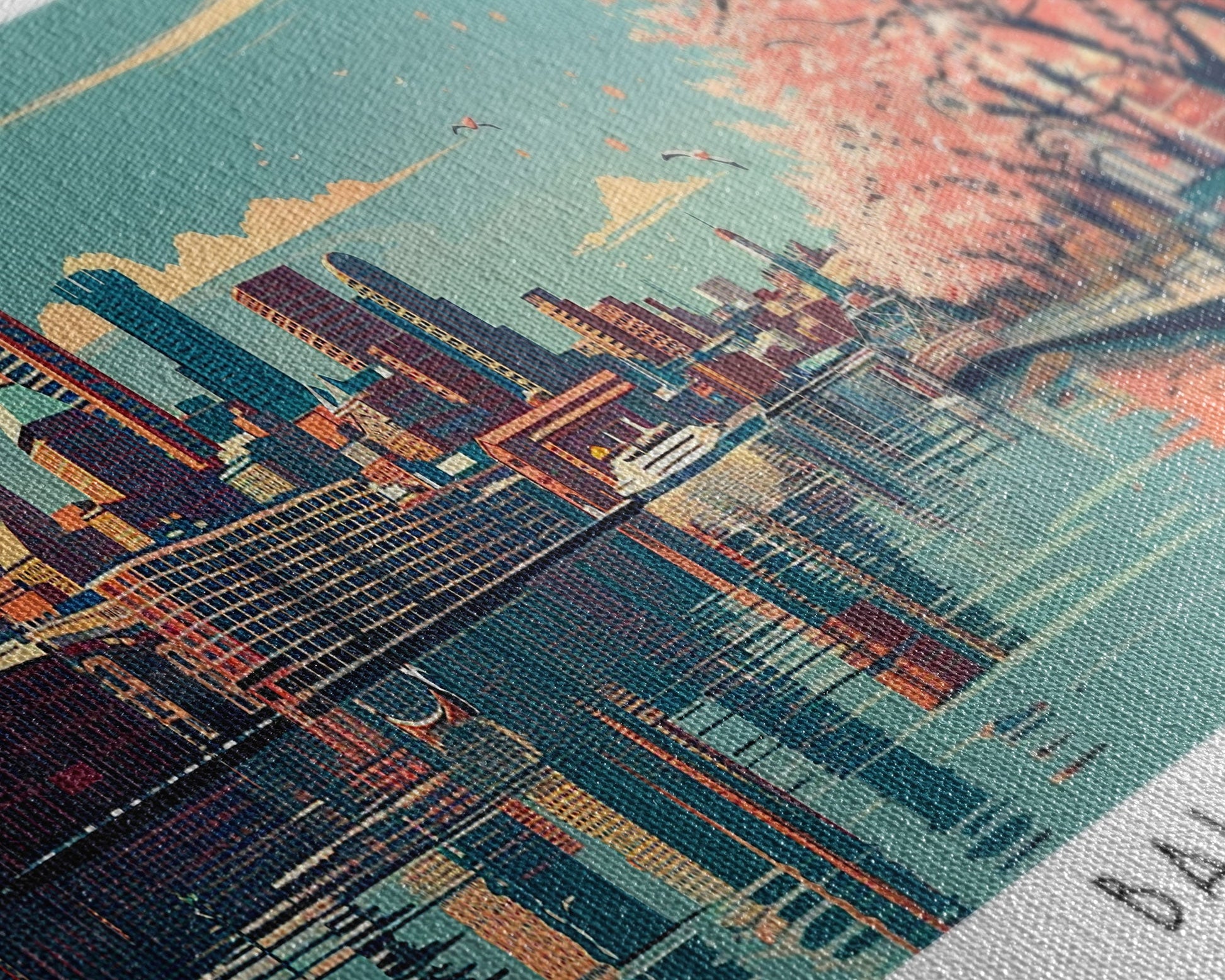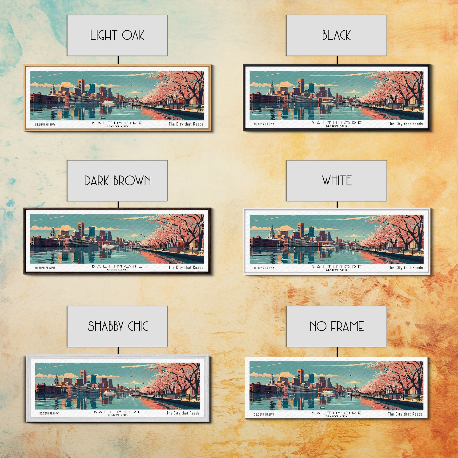 Baltimore Maryland Panoramic Painting, Framed Canvas Print, Mid Century Modern Wall Art, Retro Pop Art Travel Poster, Home Decor, City Art