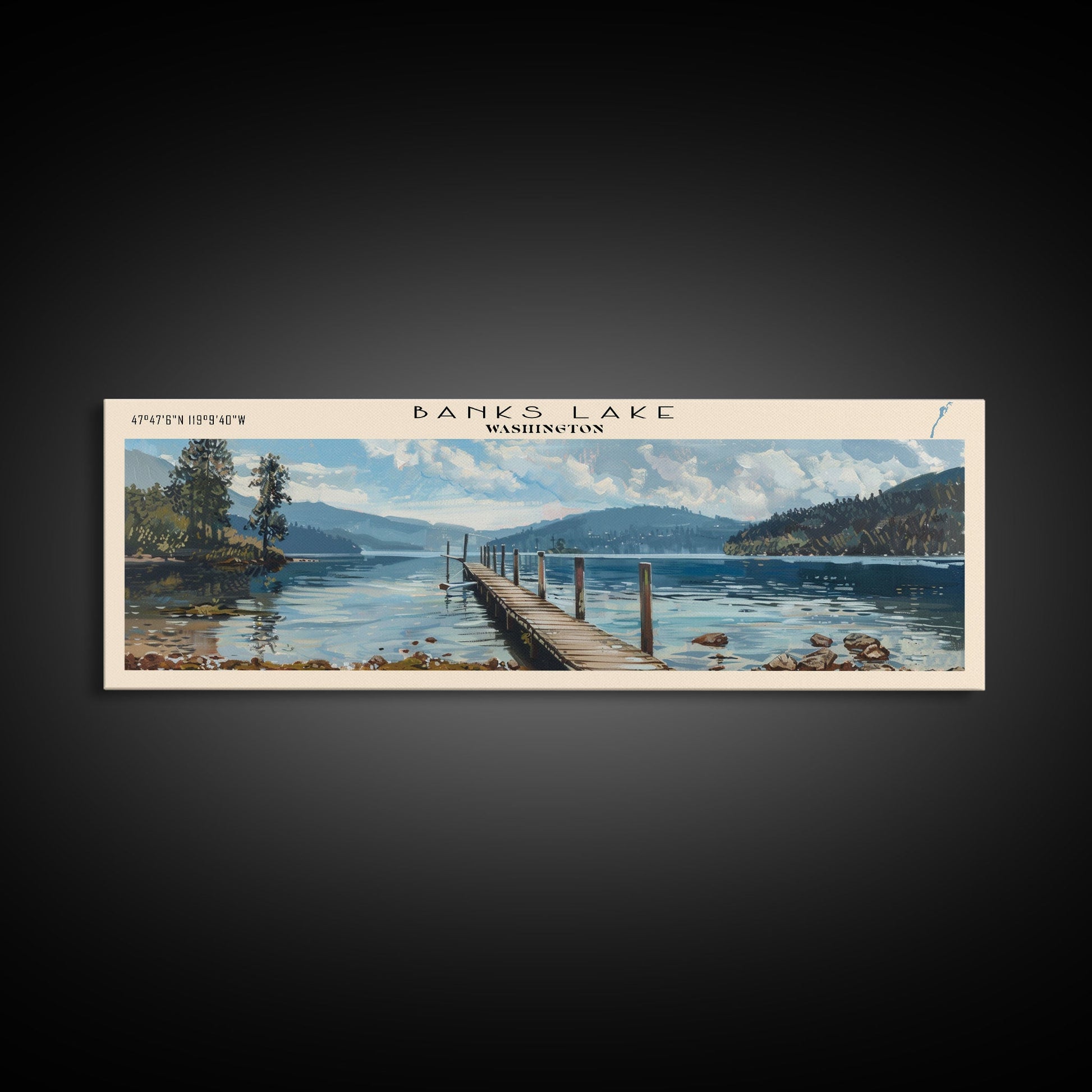 Banks Lake Washington Panoramic Framed Canvas Print, Lake House Decor, Rustic Art, Travel Poster, Scenic View, Home Decoration