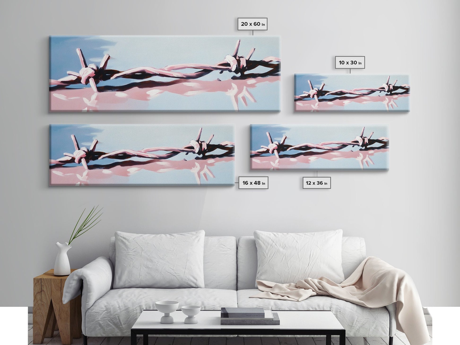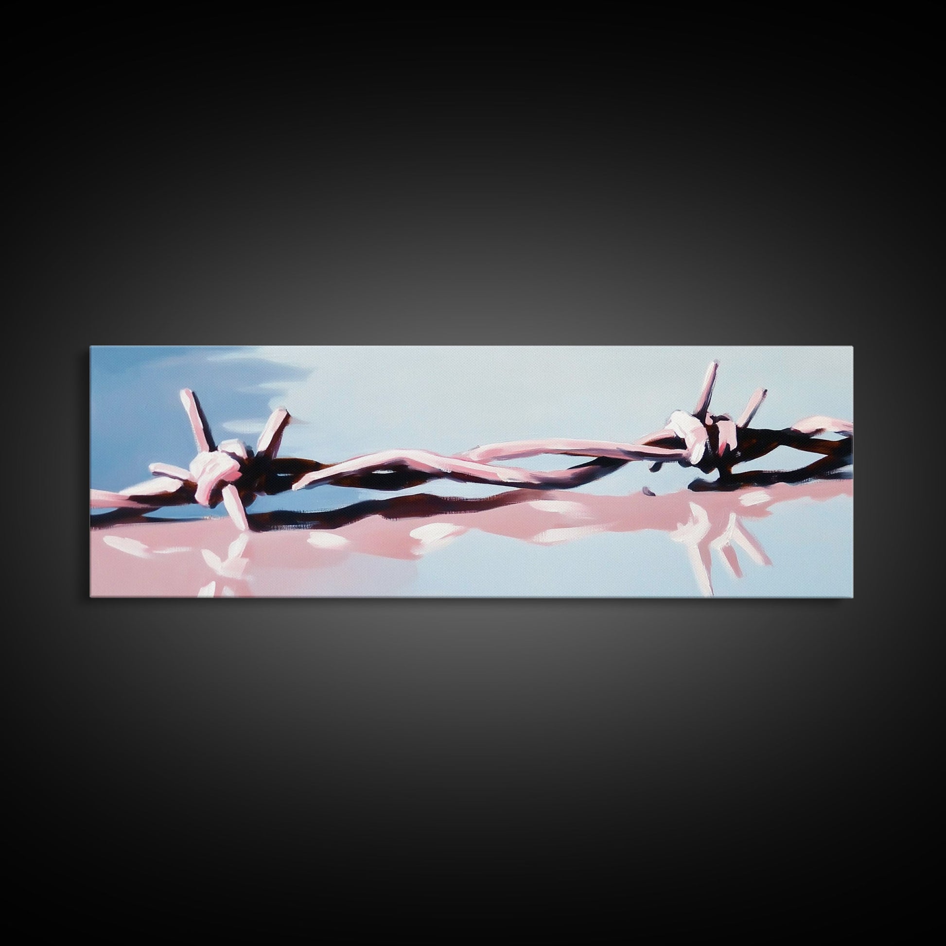 Barbed Wire, Abstract Fence, Rustic Wall Art, Framed Canvas Print, Minimalist Country Decor, Industrial Farmhouse, Western Artwork