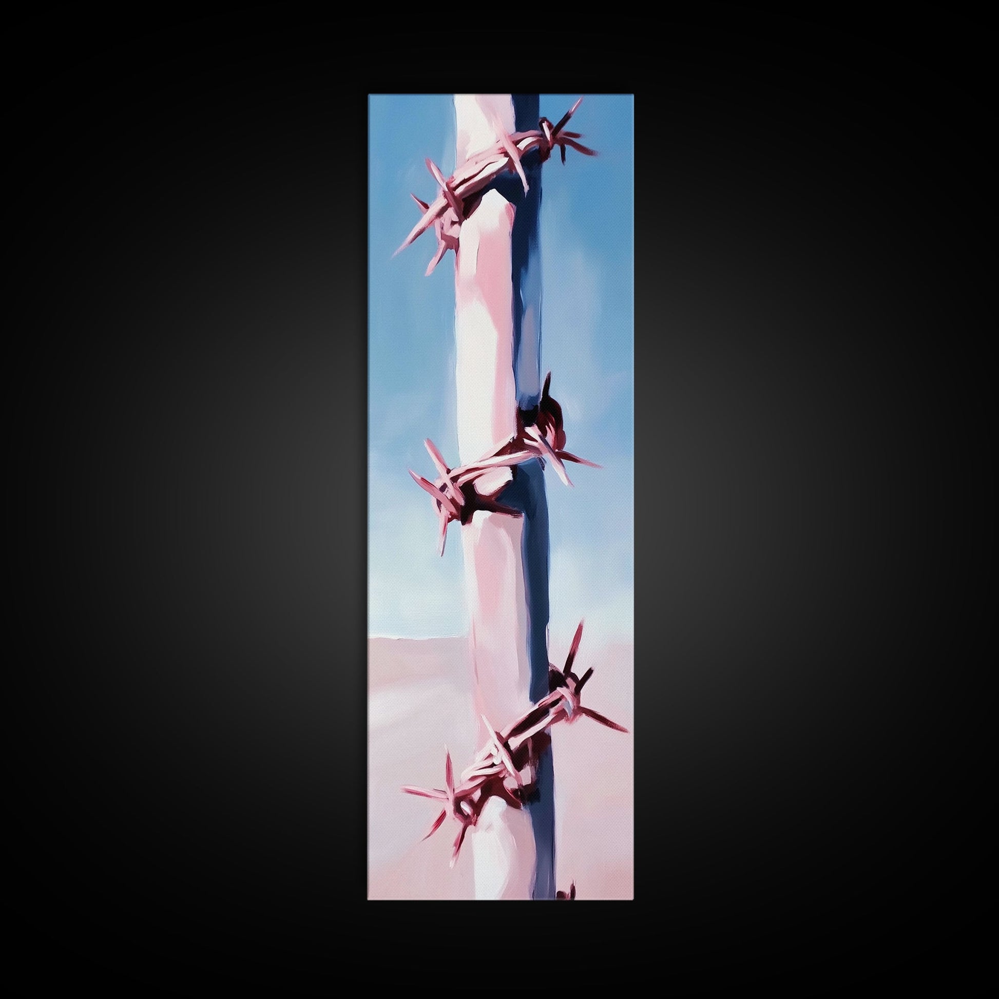 Barbed Wire Fence, Rustic Western, Moody Pink Art, Framed Canvas Print, Minimalist Farmhouse, Modern Wall Art, Entryway Decor