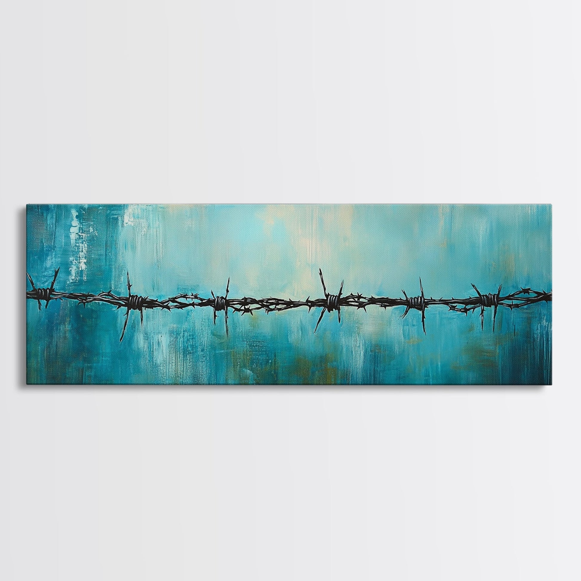 Barbed Wire Minimalist Painting, Blue and Black Modern Wall Art, Industrial Urban Aesthetic, Bold Statement Office, Canvas Print
