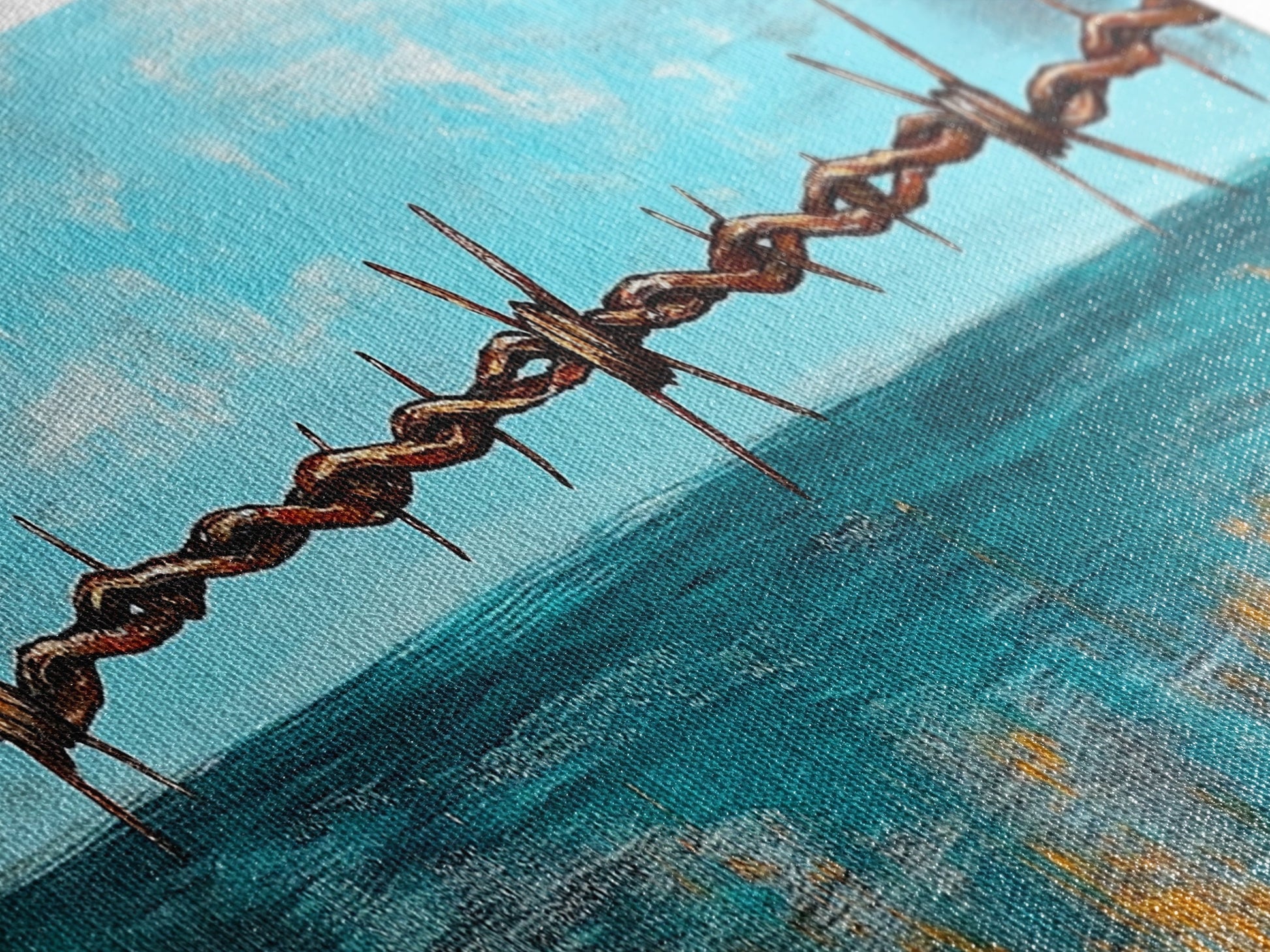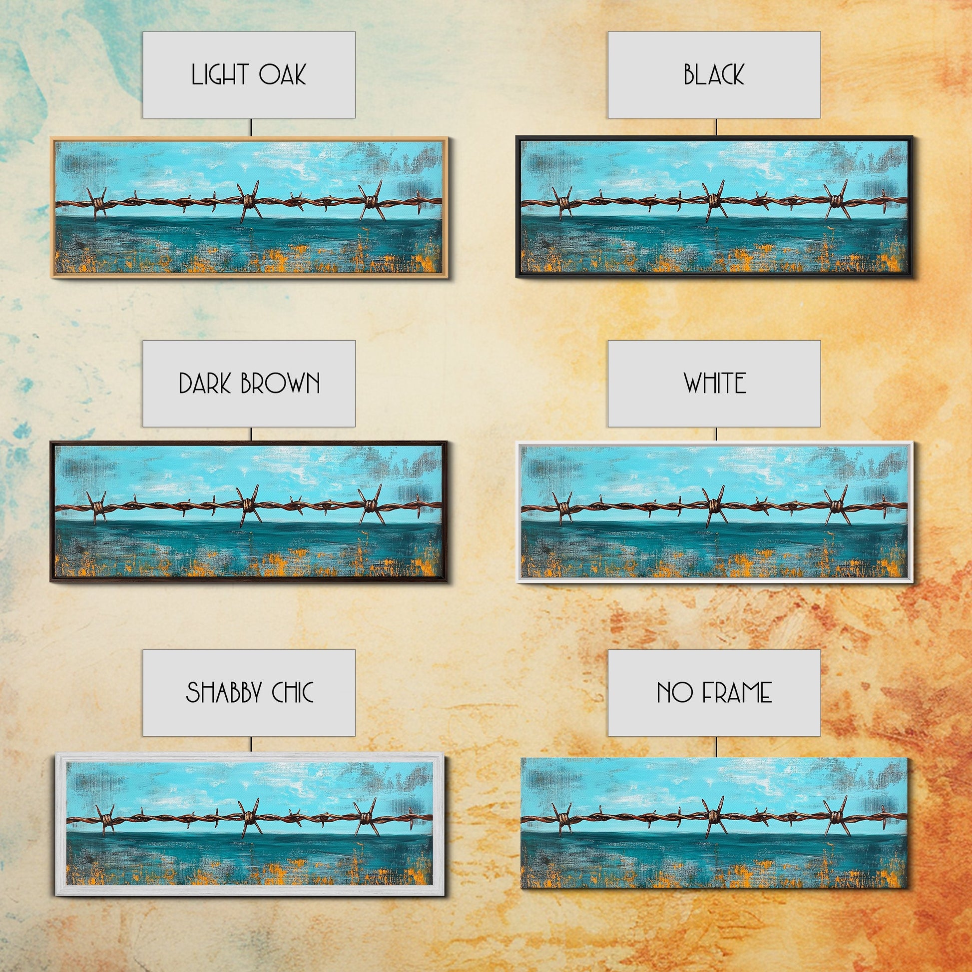 Barbed Wire Ocean, coastal decor, rustic art, farmhouse painting, minimalist painting, extra wide art, framed canvas print, moody art