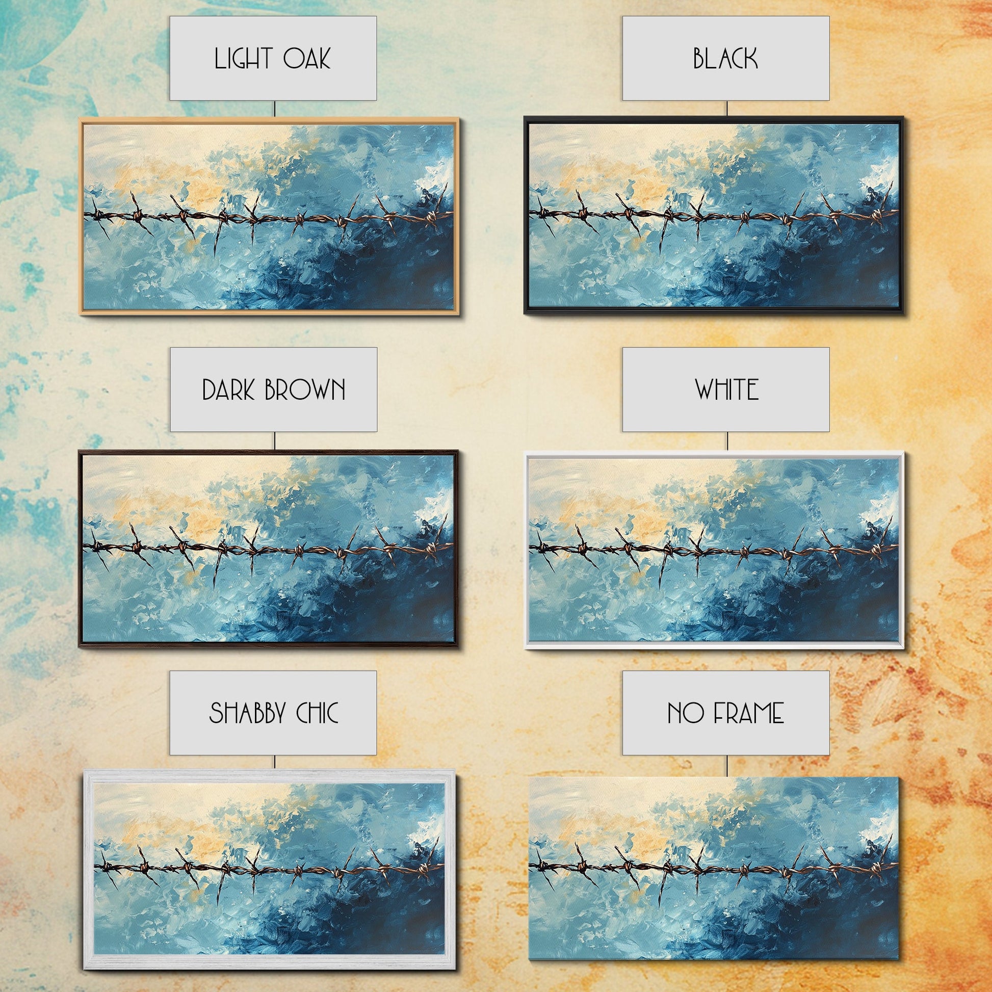 Barbed Wire, Rustic Wall Art, Southwest Art, Minimalist Art, Moody Painting, Extra Wide Art, Western Landscape Art, Framed Canvas Print