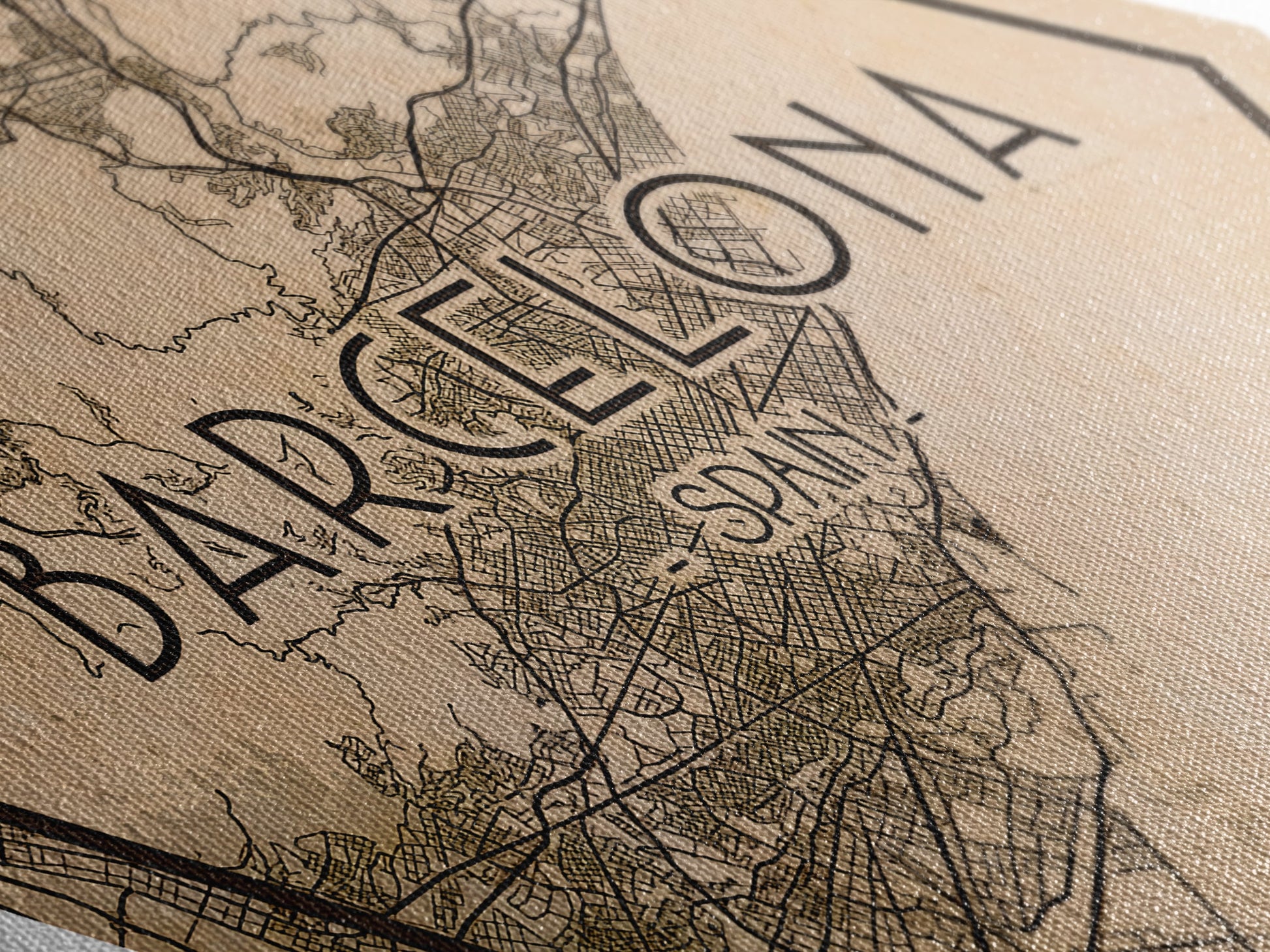 Barcelona - Spain Diamond Shaped Travel Poster, Custom Diamond Shaped Wall Art, City Map Canvas