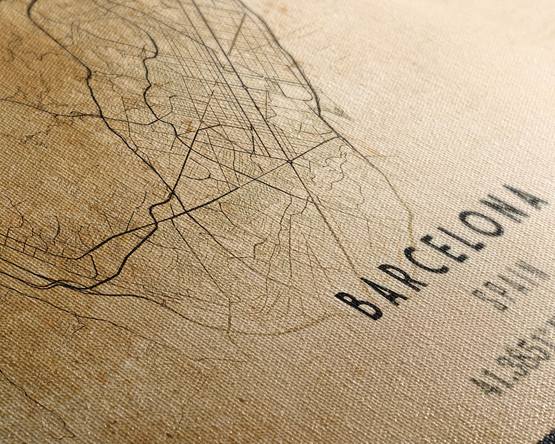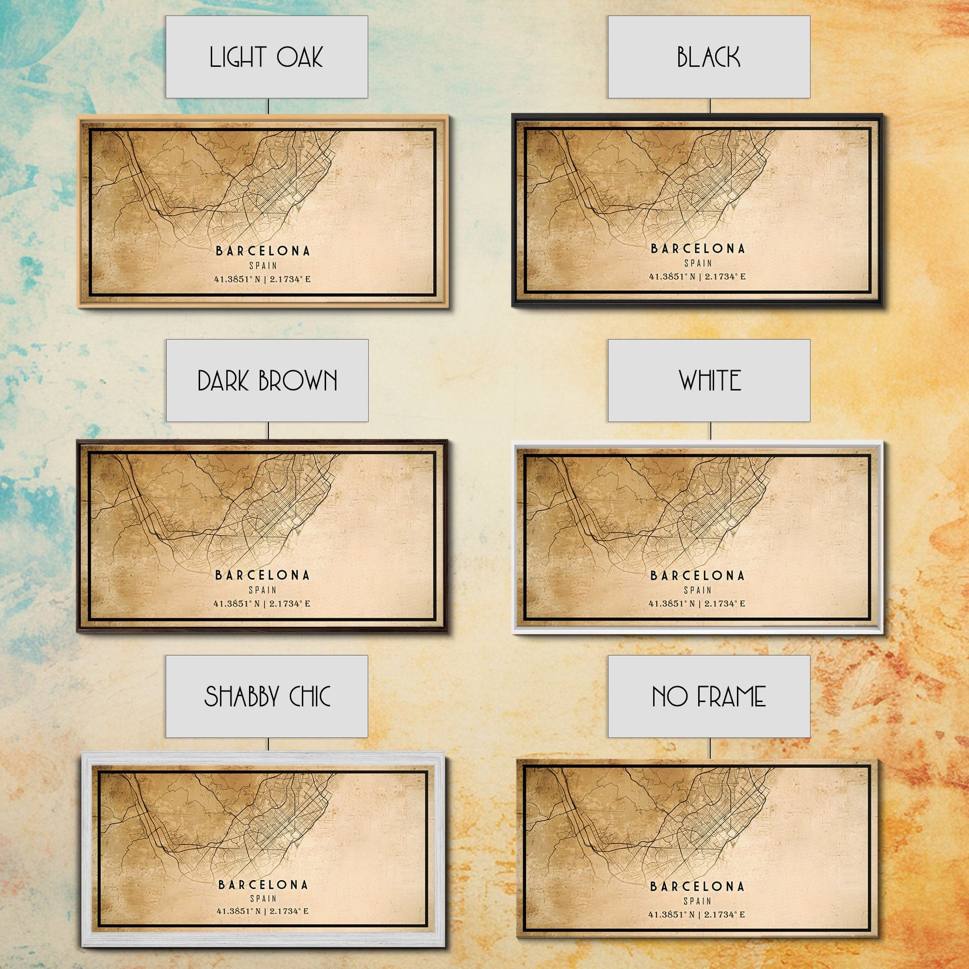 Barcelona Spain map print poster or framed canvas, Barcelona map print poster canvas, Spain city map print poster canvas, Vintage Travel Art