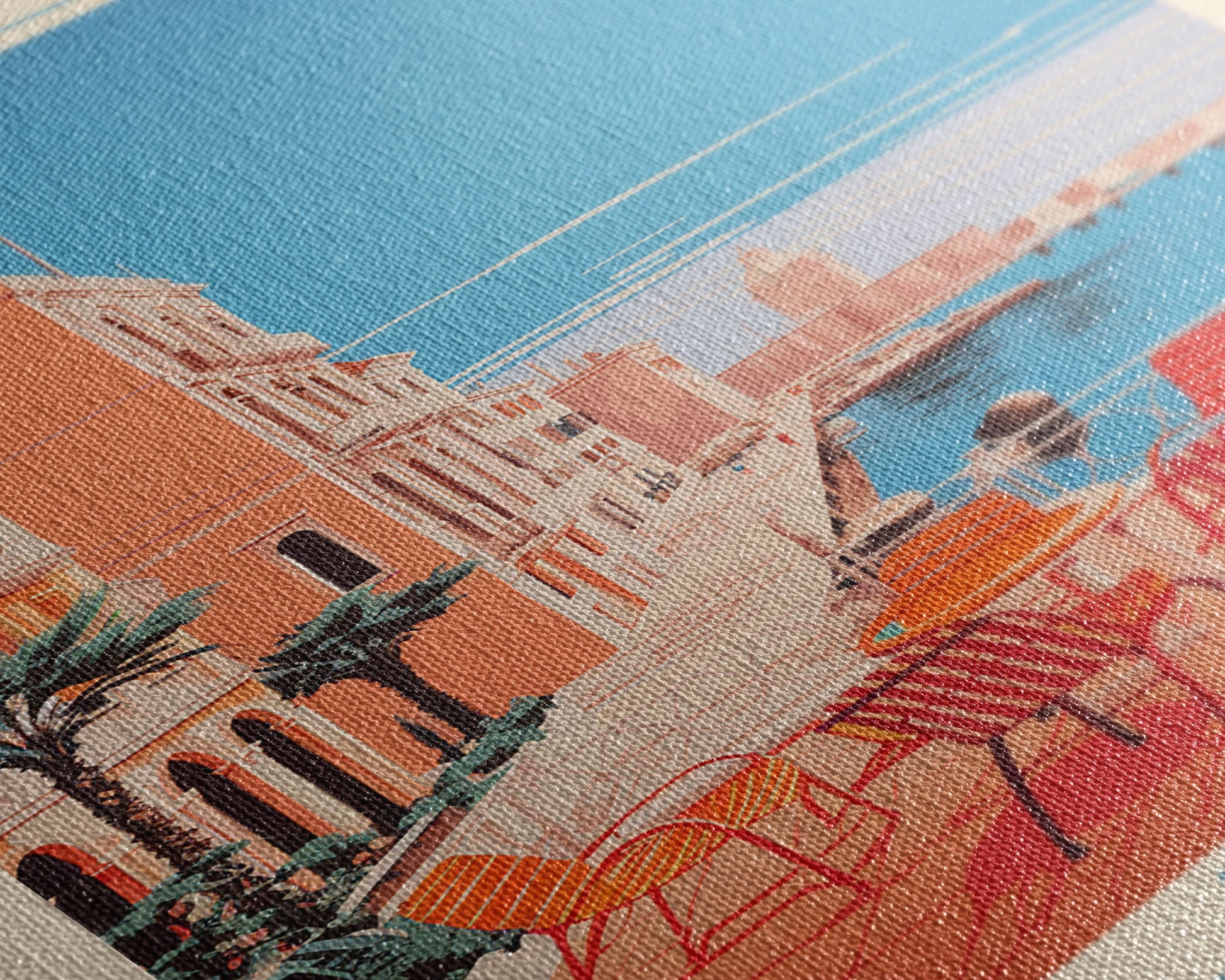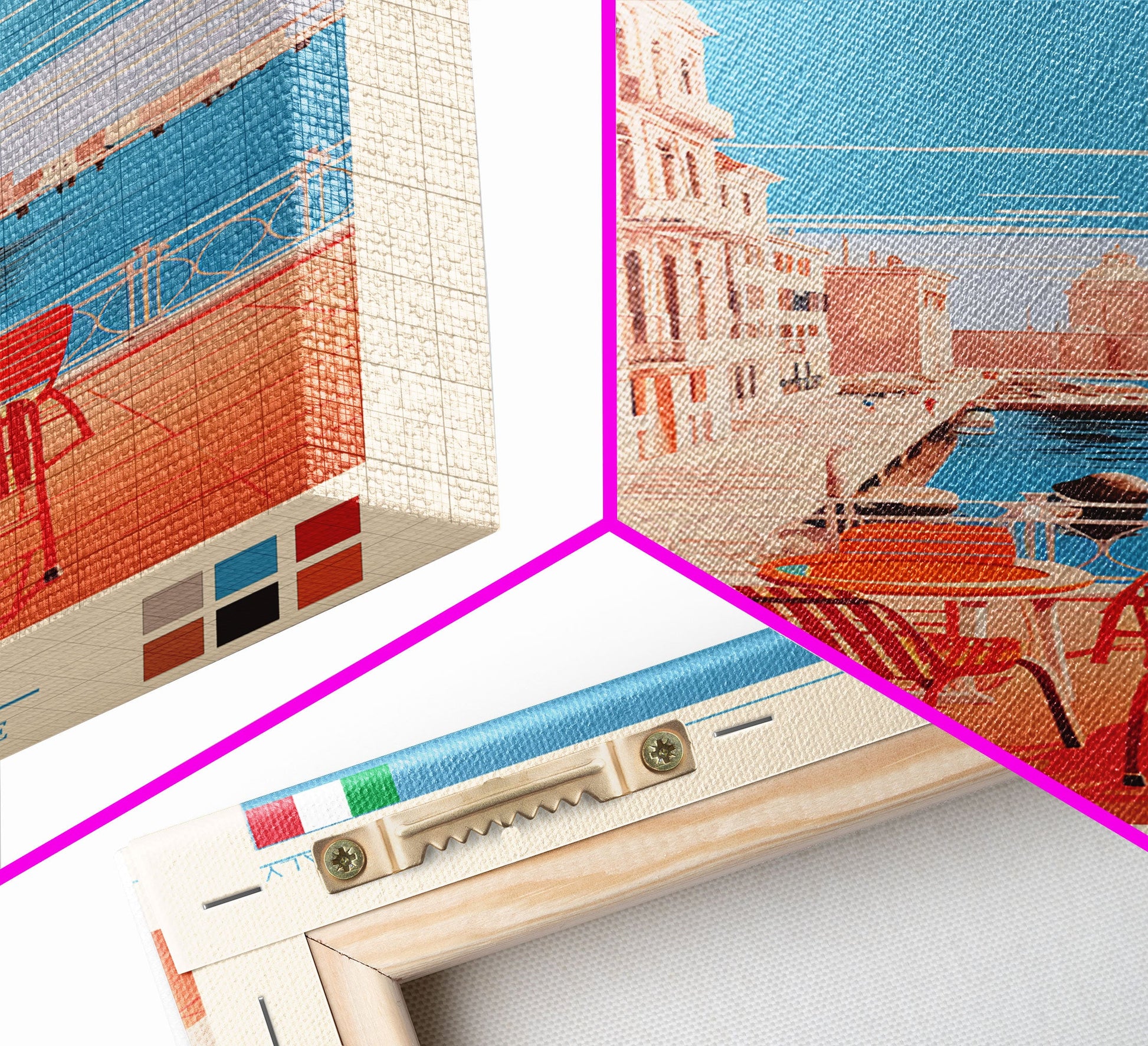 Bari Italy Travel Poster Framed Canvas Print, Midcentury Modern Art, Pop Art Wall Decor, Home Decor, Vacation Gift, Living Room Art