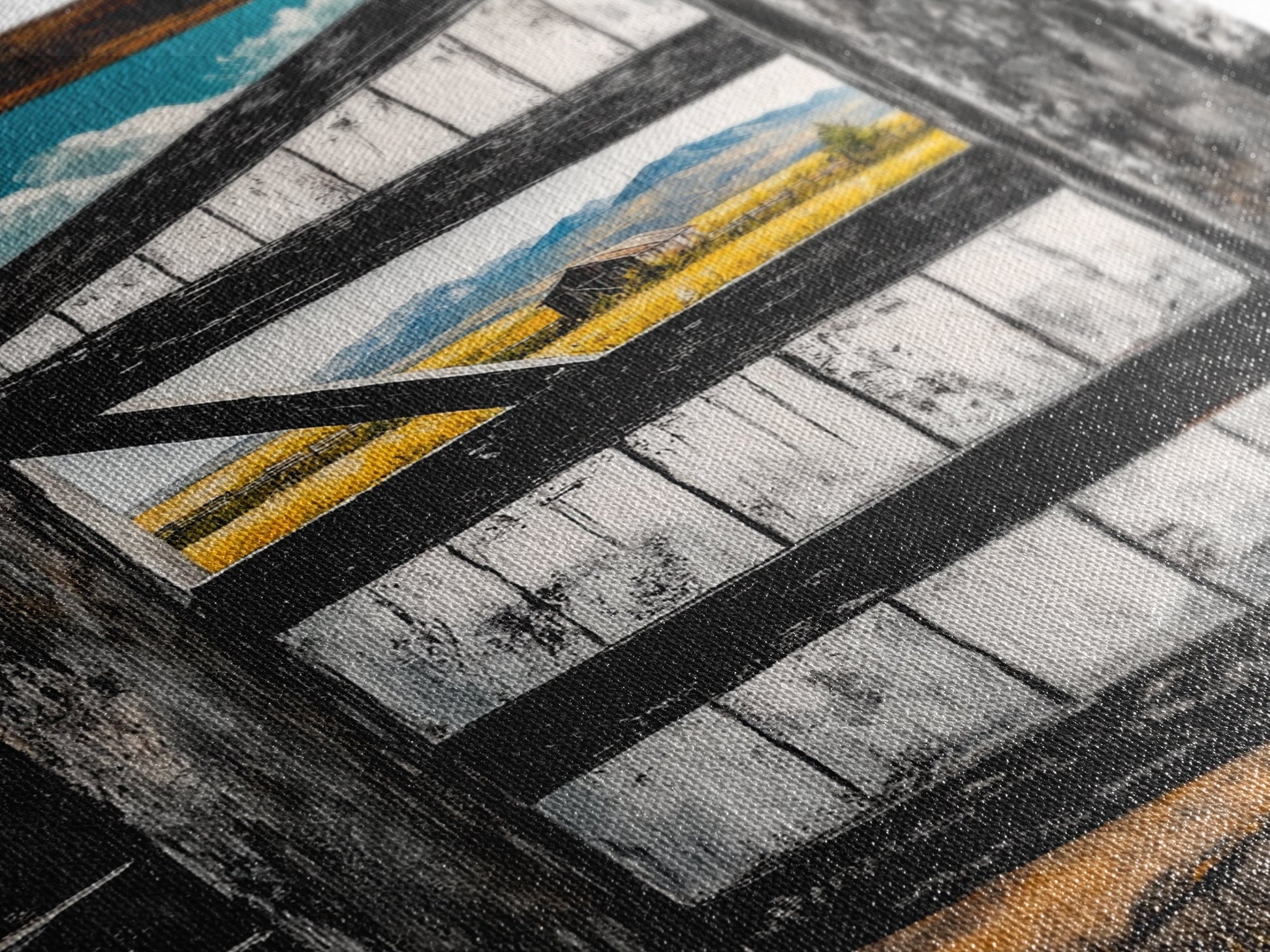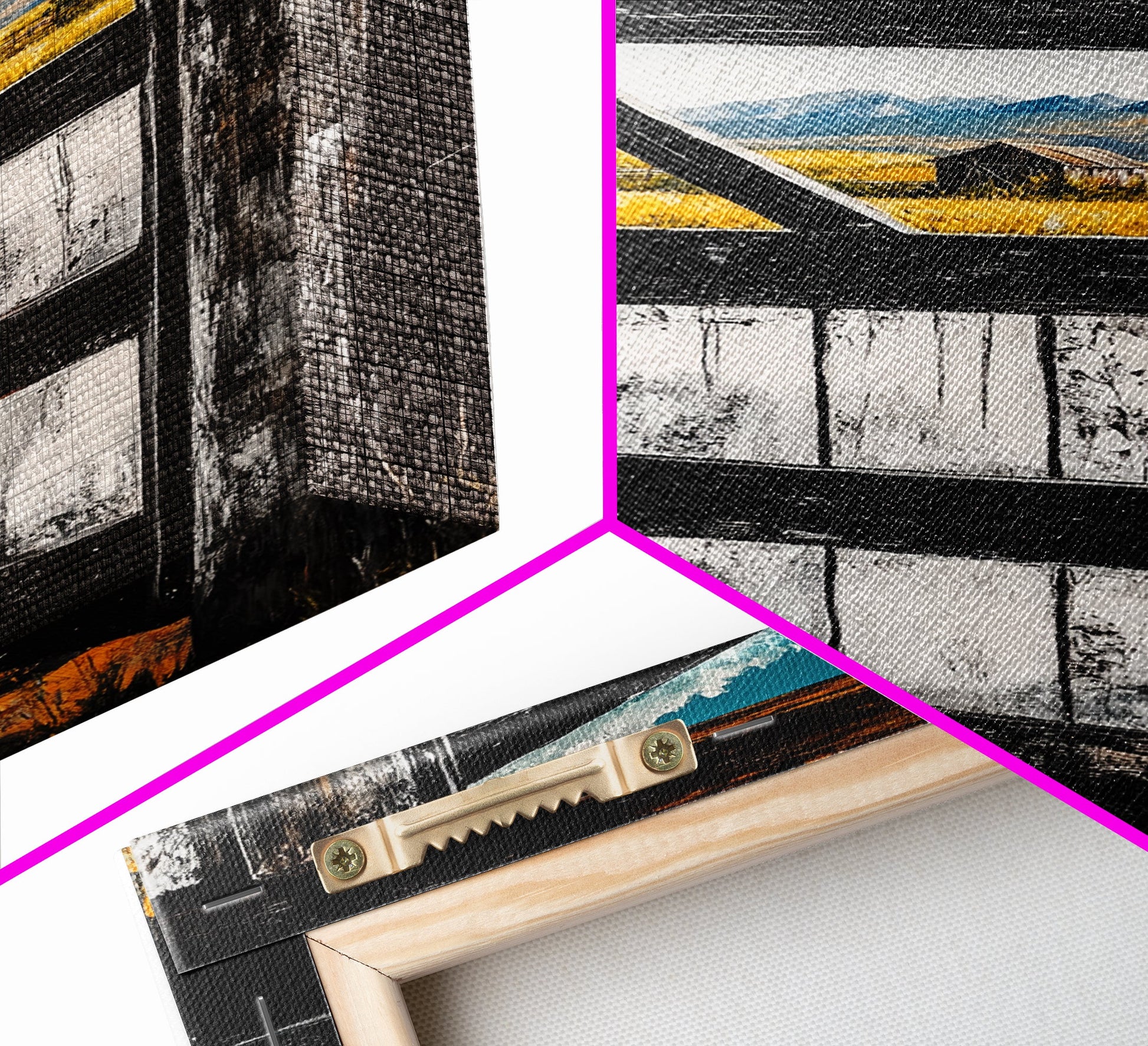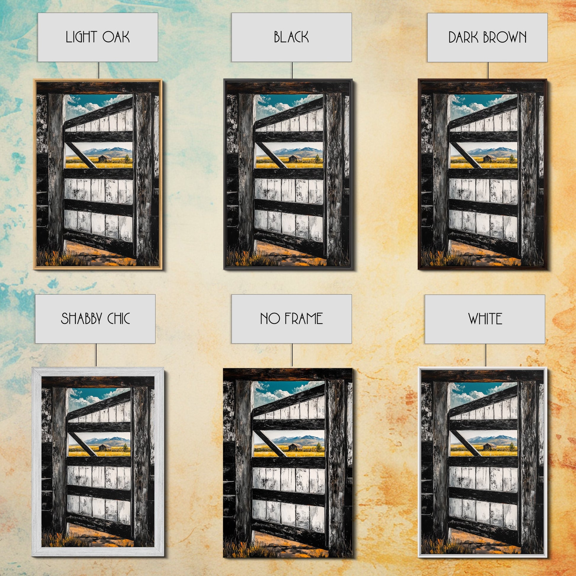 Barn Door View, Mountain Escape, Rustic Scene, Framed Canvas Print, Western Wall Art, Cabin Decor, Farmhouse Style, Country Living