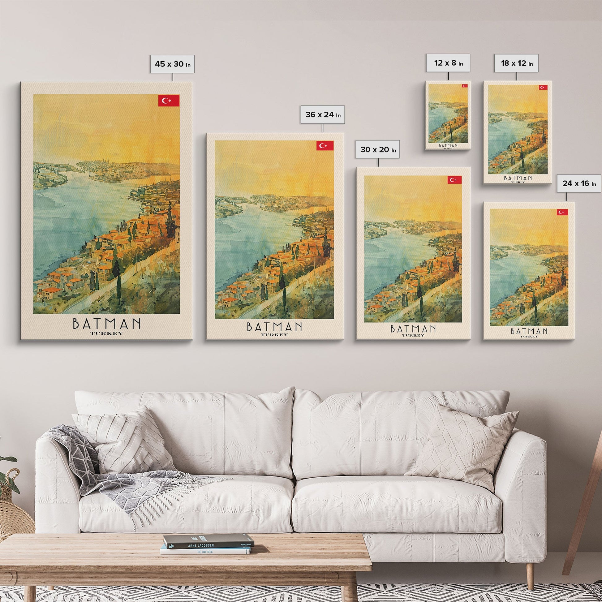Batman Turkey Travel Poster Framed Canvas Print, Wall Art, Living Room Art, Watercolor Painting, Original Art, Vacation Gift