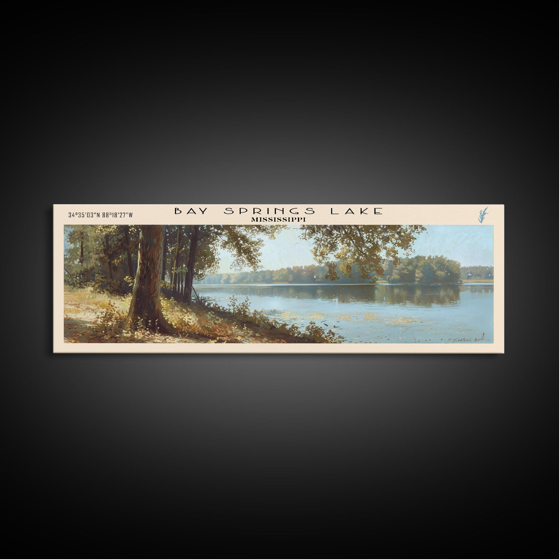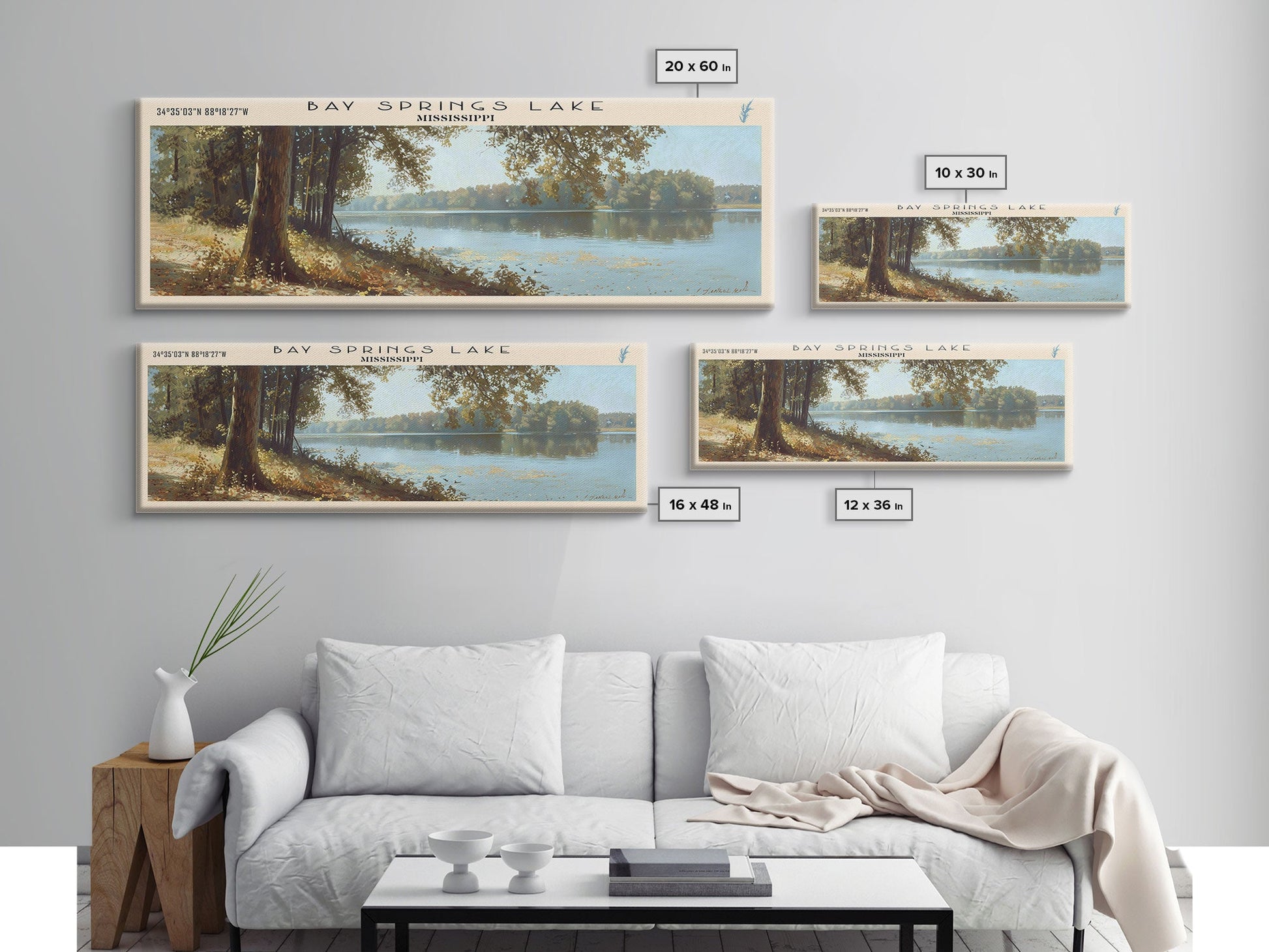 Bay Springs Lake Mississippi Framed Canvas Print, Panoramic Lake House Art, Scenic Painting, Travel Poster, Modern Decor, Nature Scene