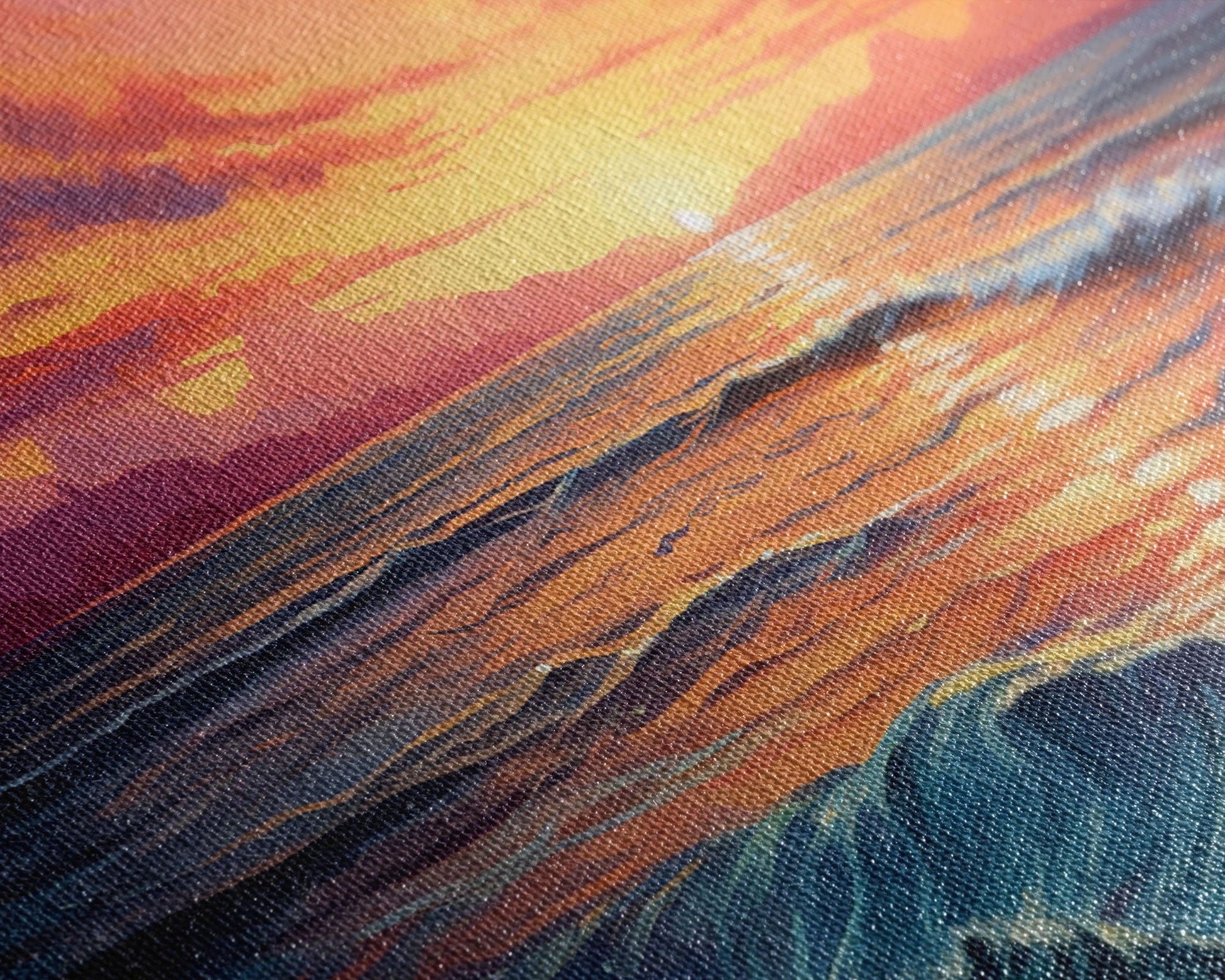Most of our canvases are made in the USA, with the exception of canvases ordered with the light oak unstained frames, and any large canvases (24x48, 30x60, 16x48 and 20x60) ordered WITH a frame. These are temporarily made in and shipped from Europe, while we try to find a more consistent supplier in the USA.