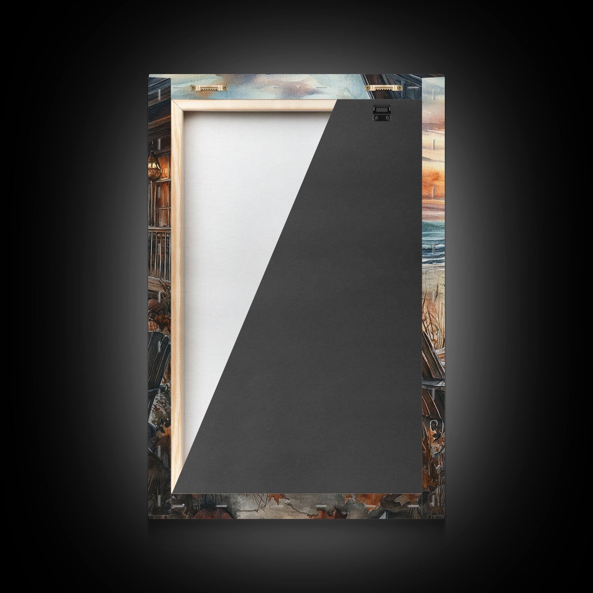 Beach Campfire On The Fall, Framed Canvas Print, Boho Beach Art Nautical Decor, Modern Christmas / Thanksgiving Gift Wall Art