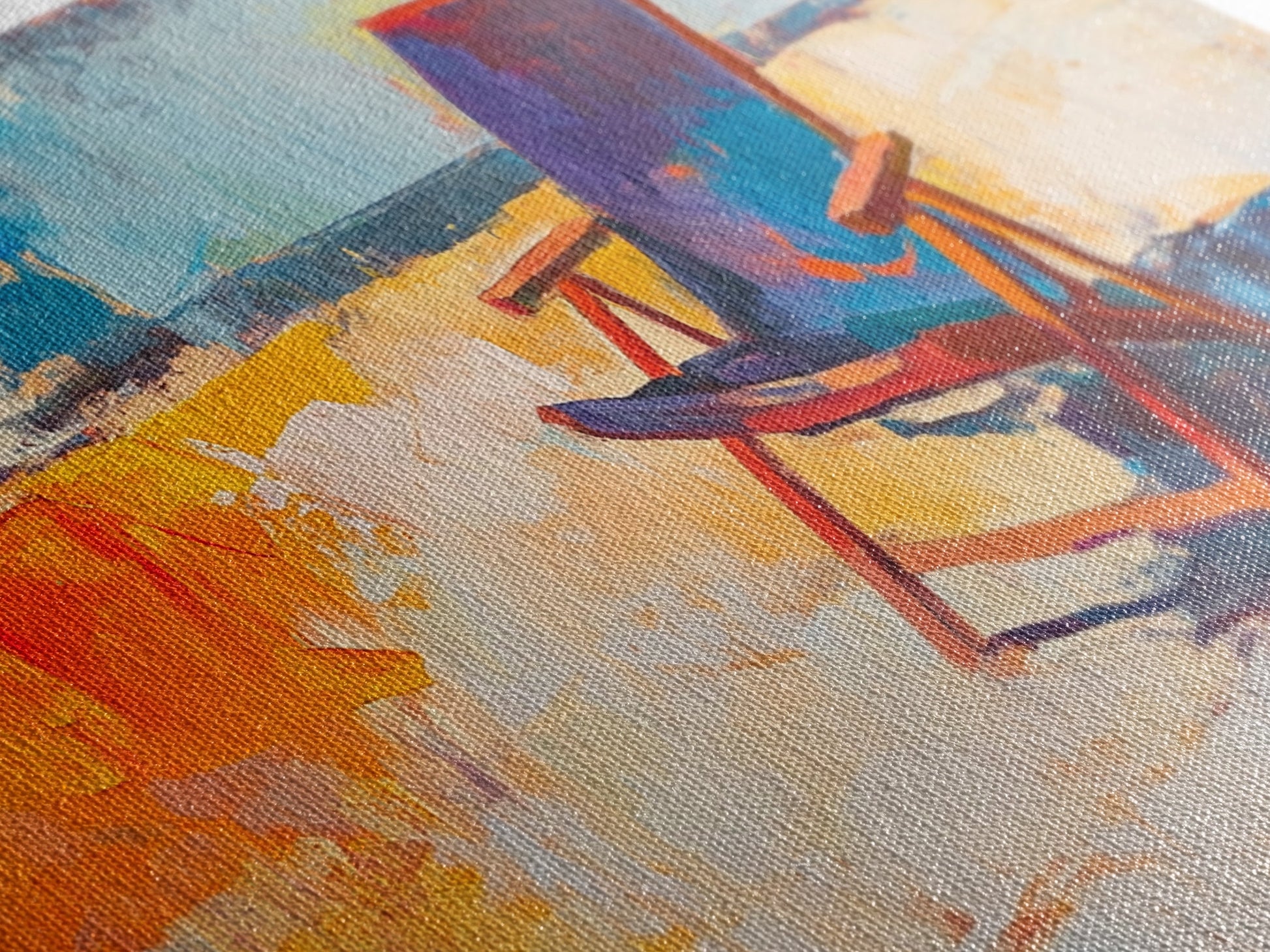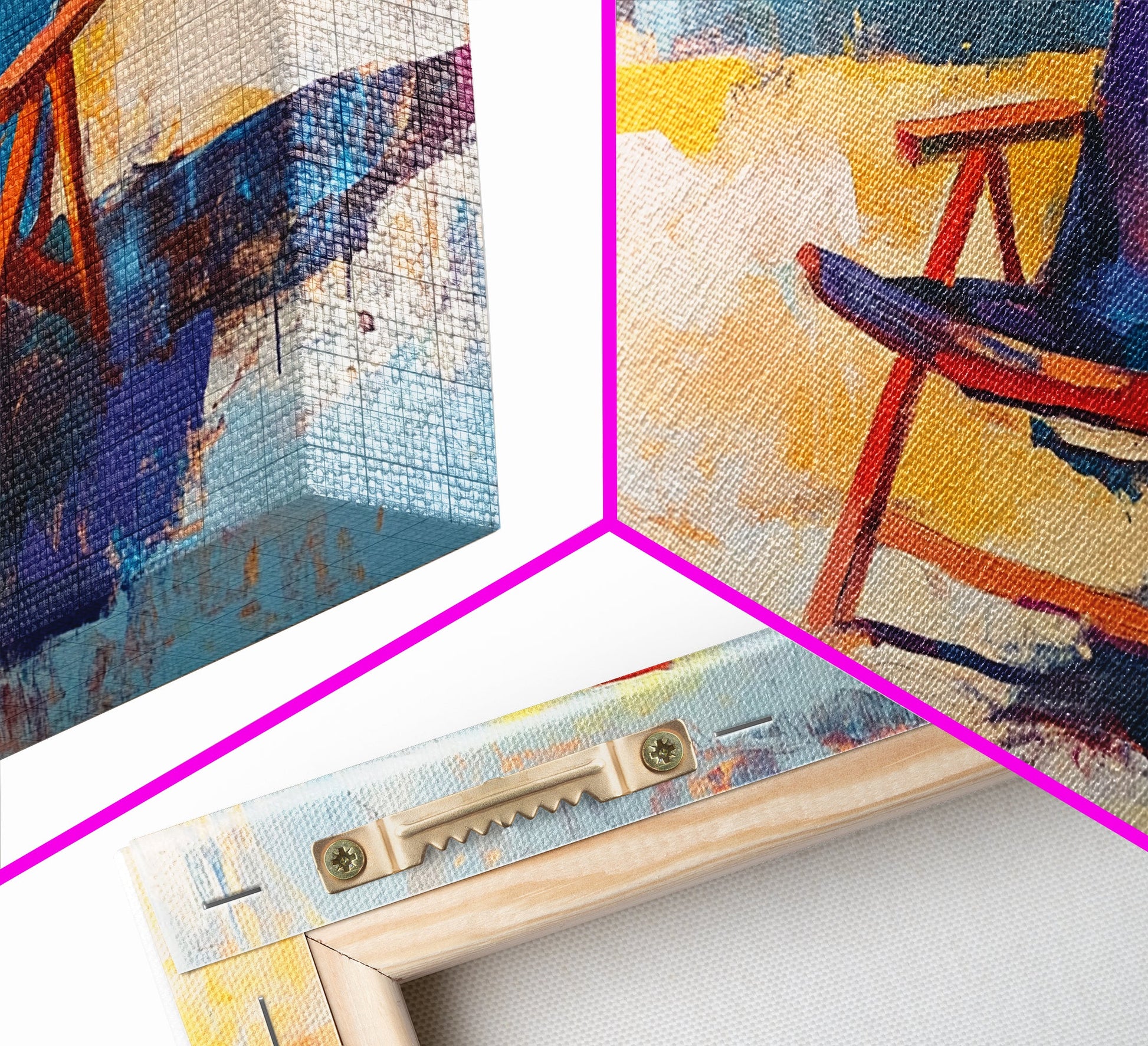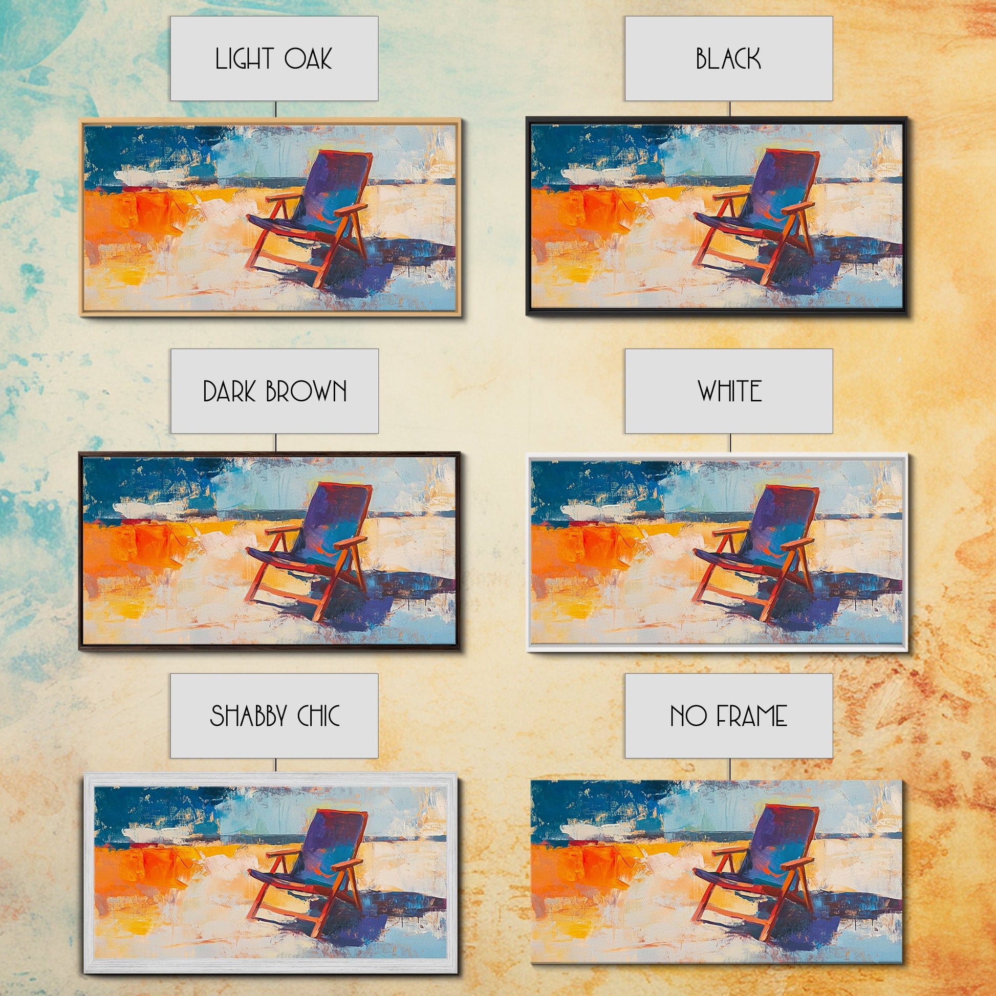 Beach Chair Art, coastal decor, surf wall art, framed canvas print, blue and green wall art, whimsical art, tropical painting