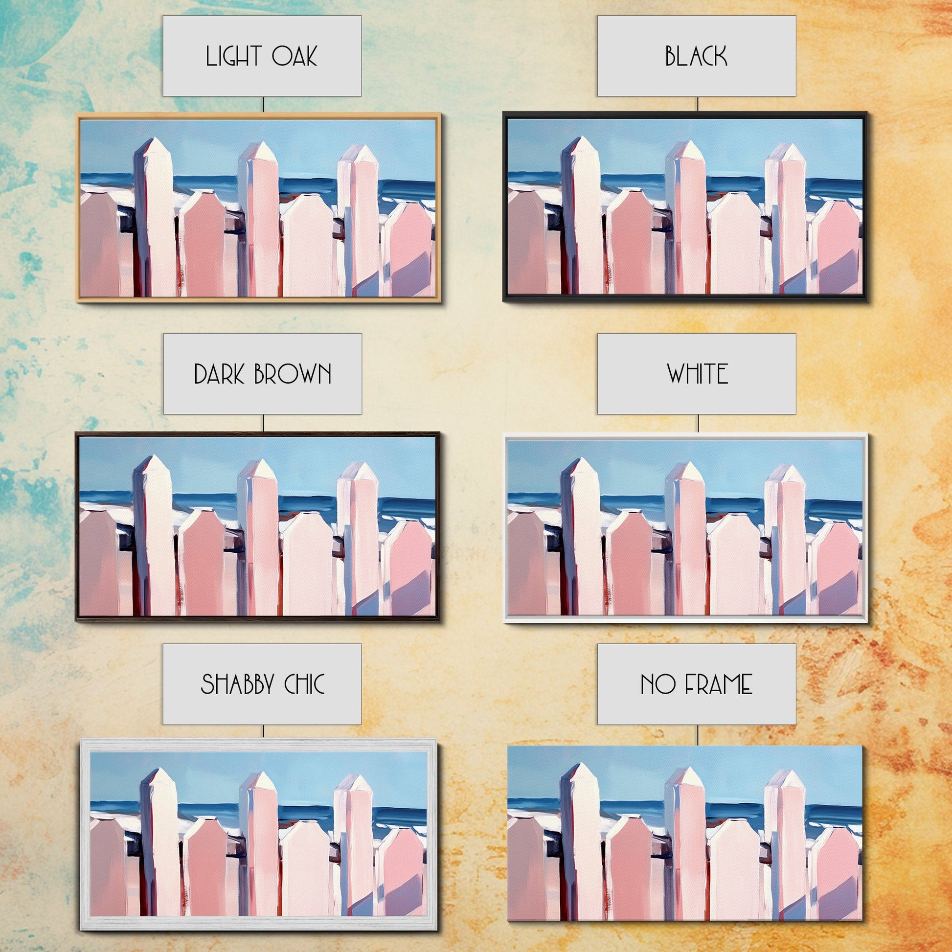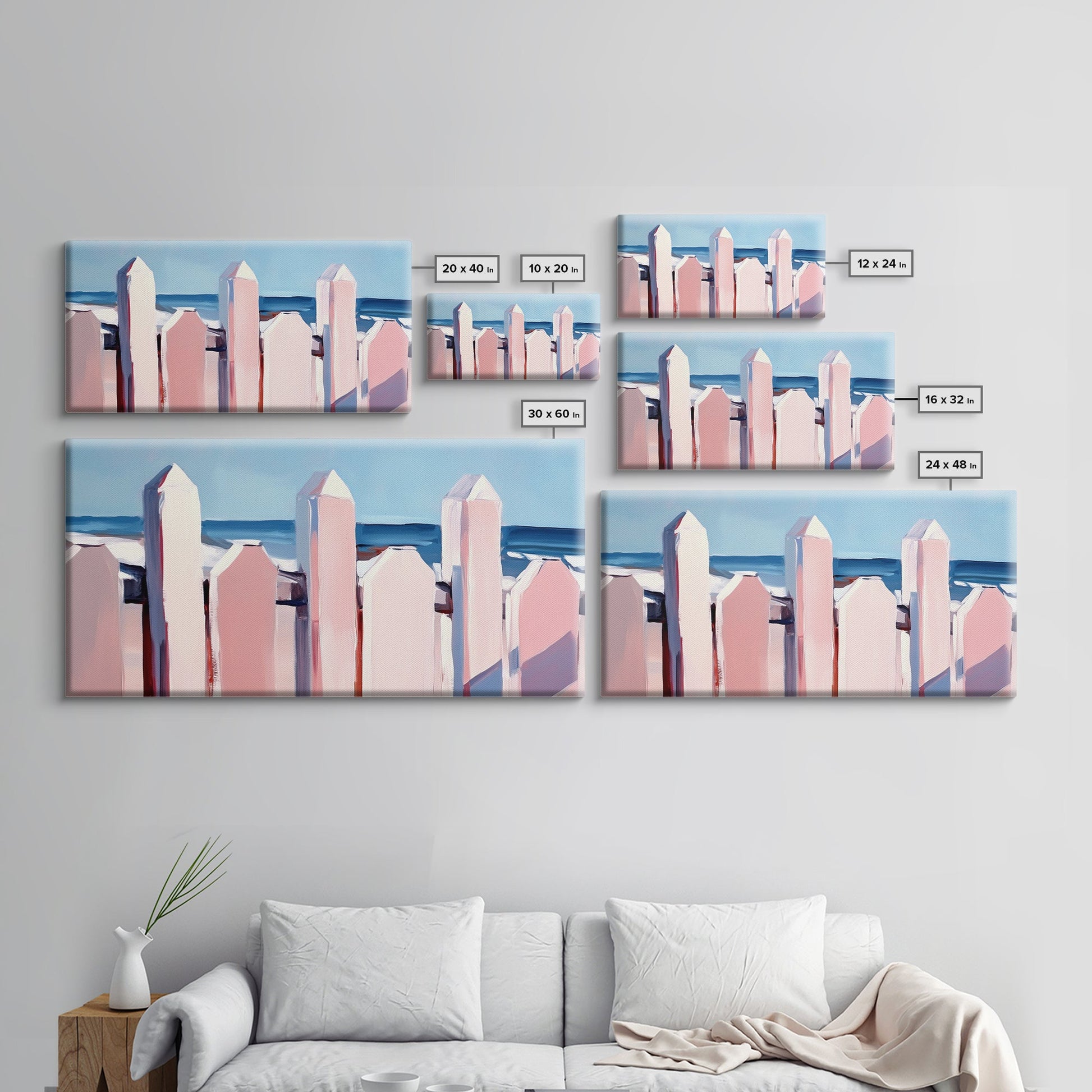 Beach Fence Painting, Coastal Landscape Art, Nautical Wall Decor, Soft Pastel Colors, Framed Canvas Print, Extra Wide Art, Seaside Home