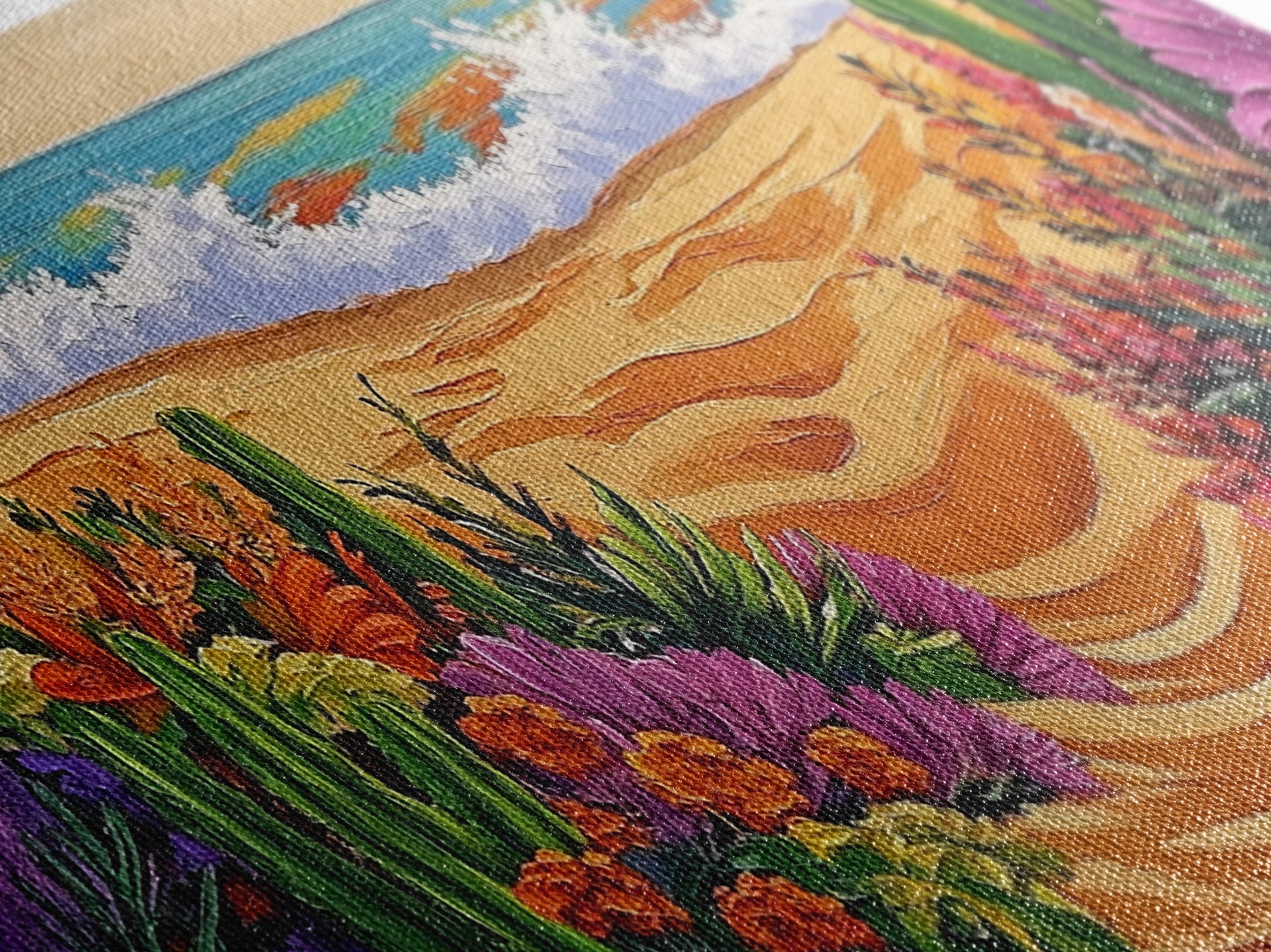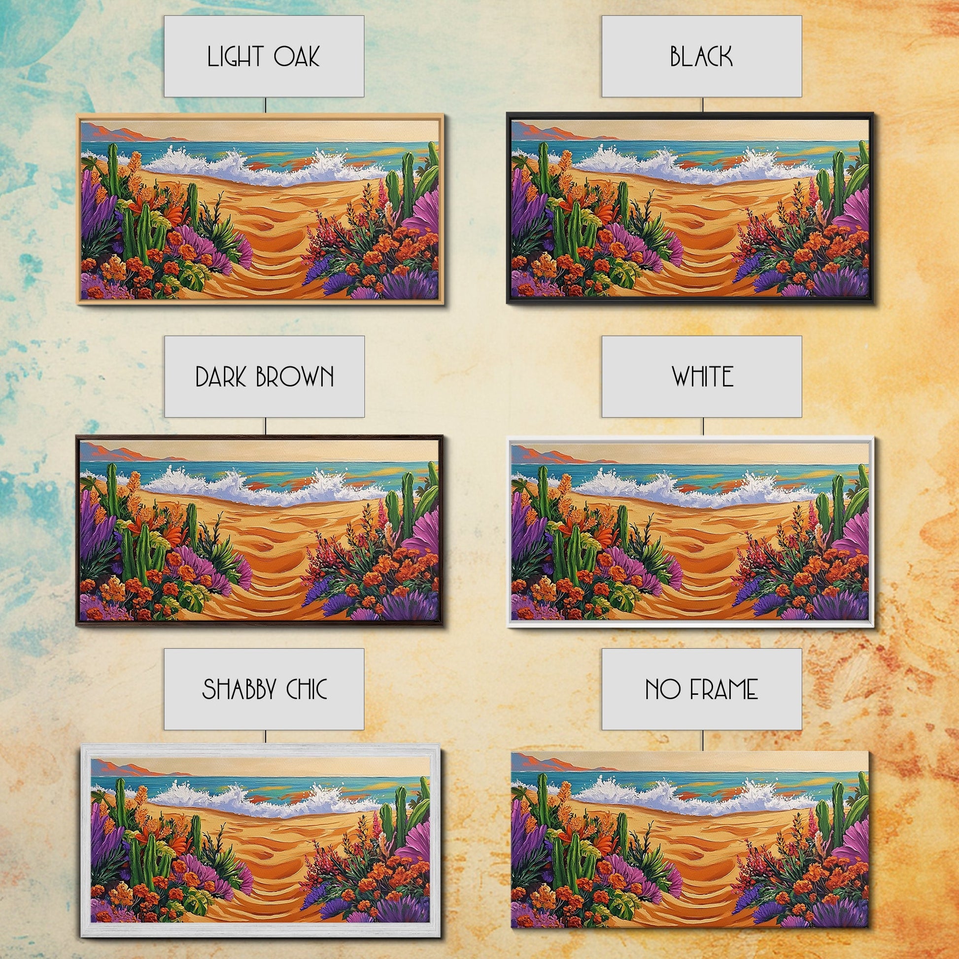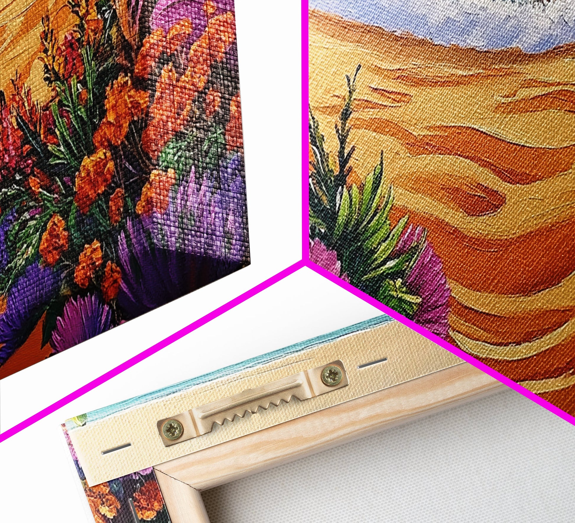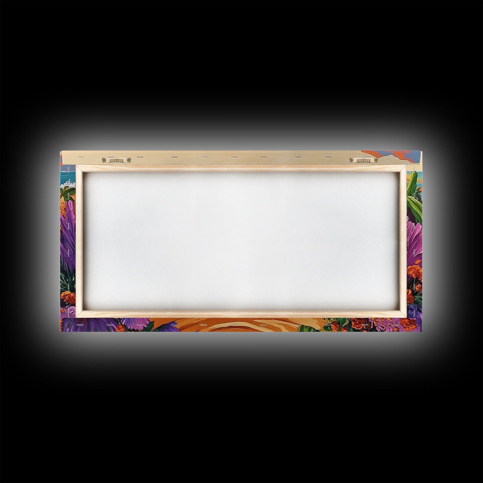 Beach Floral, Sunset, Cactus, Vibrant Desert Coastal Pathway Canvas Print, Entryway Wall Art, Boho Style Art, Tropical Beach Wall Decor