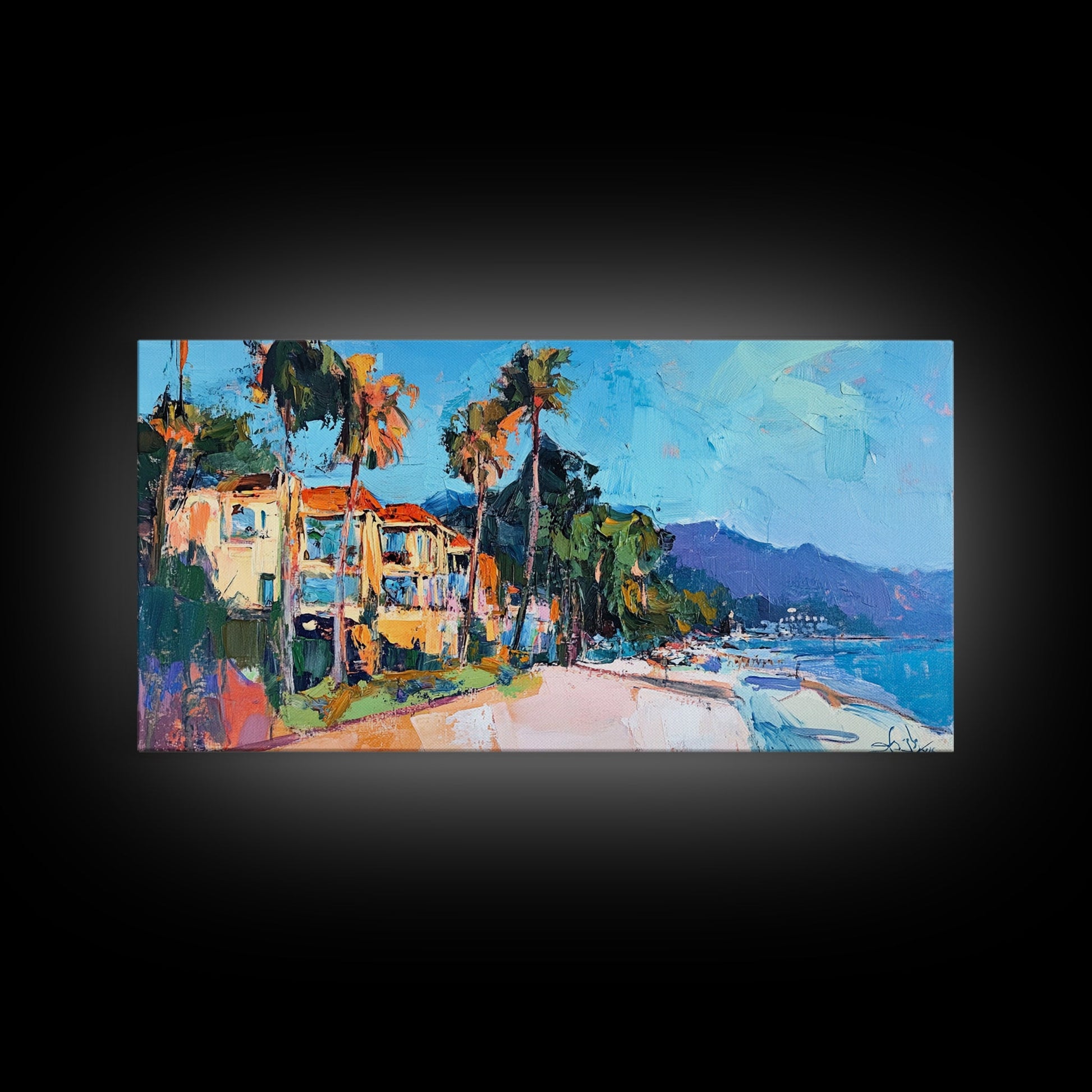 Beach House, Coastal Landscape Art, Framed Canvas Print, Hawaii Art, Coastal Wall Art, Surf Wall Art, Nautical Decor