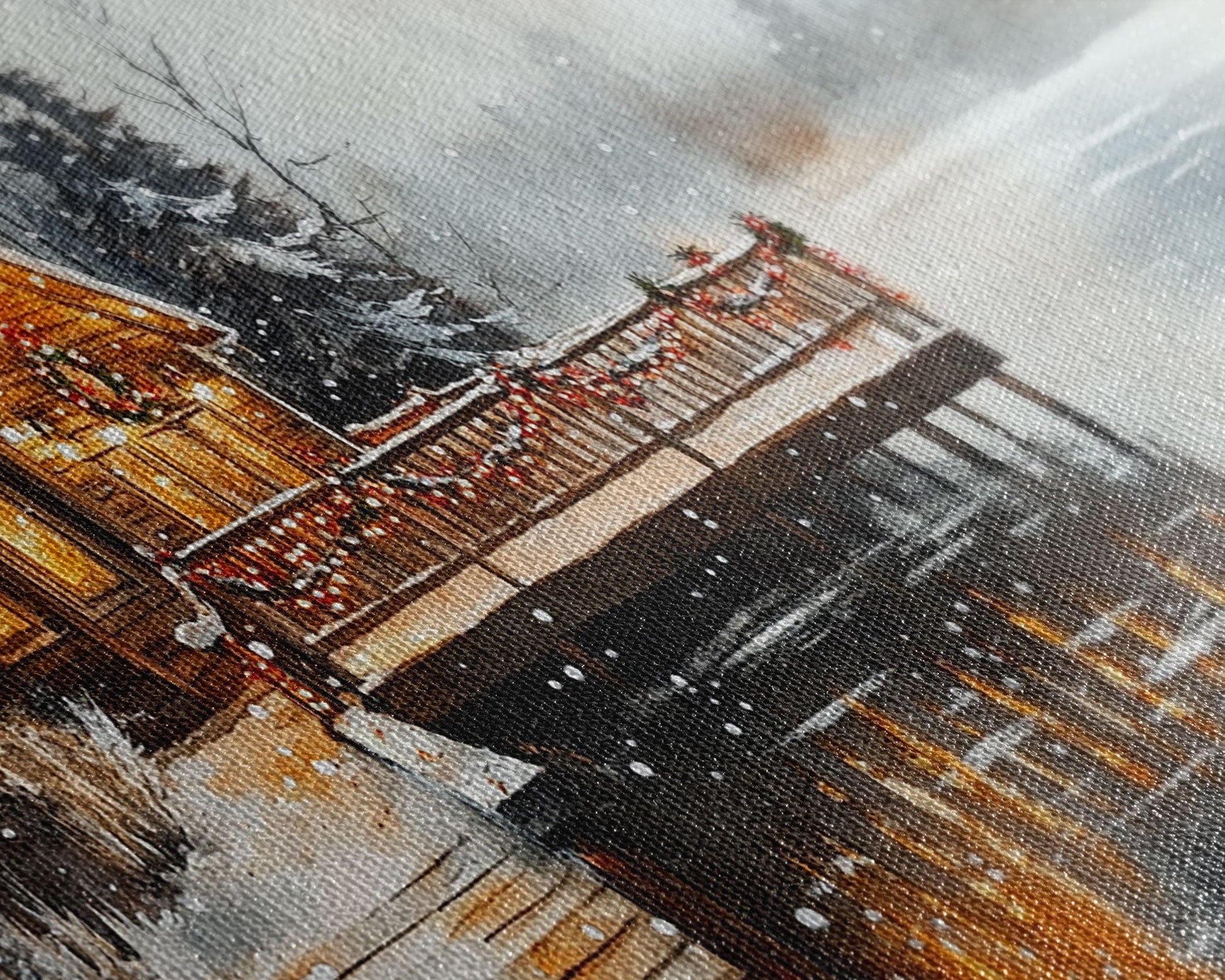 Most of our canvases are made in the USA, with the exception of canvases ordered with the light oak unstained frames, and any large canvases (24x48, 30x60, 16x48 and 20x60) ordered WITH a frame. These are temporarily made in and shipped from Europe, while we try to find a more consistent supplier in the USA.