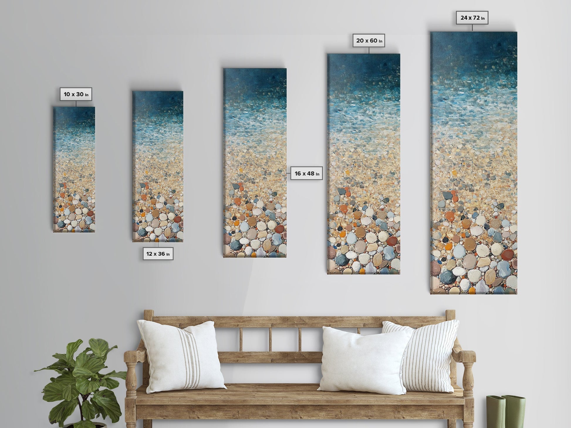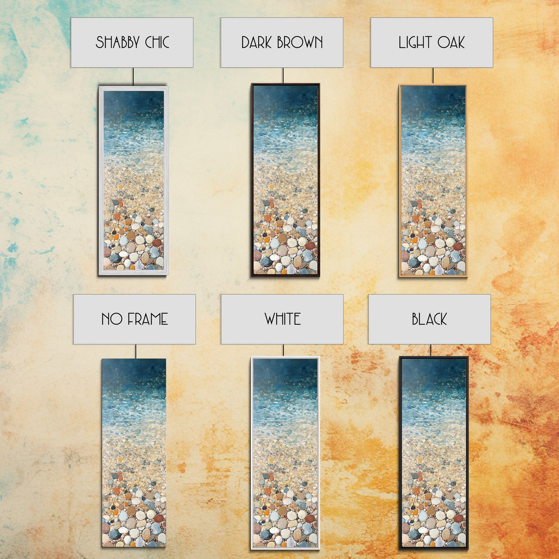 Beach Shoreline, coastal painting, mosaic wall art, ocean decor, nautical wall art, farmhouse art, Framed Canvas Print, rustic decor