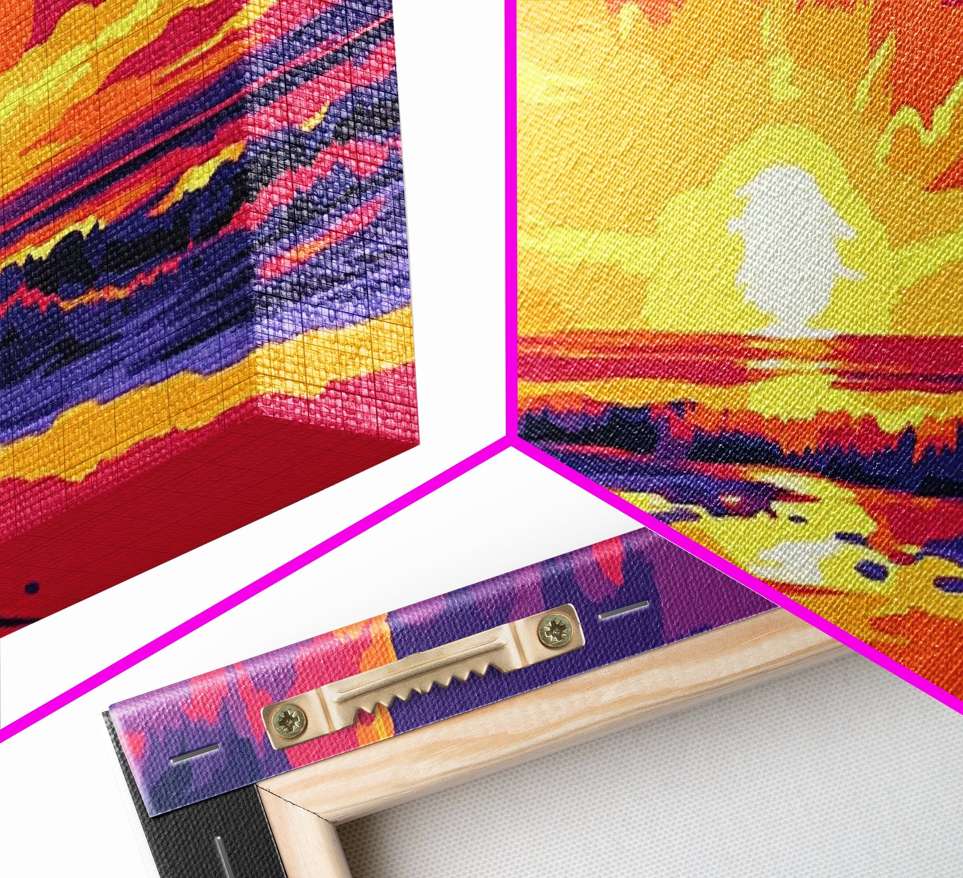 *SHIPPING: Every canvas is carefully wrapped in bubble wrap and foam corner protectors, and shipped fully assembled and ready to hang with sawtooth hangers in a flat box. All you need is a hammer!
