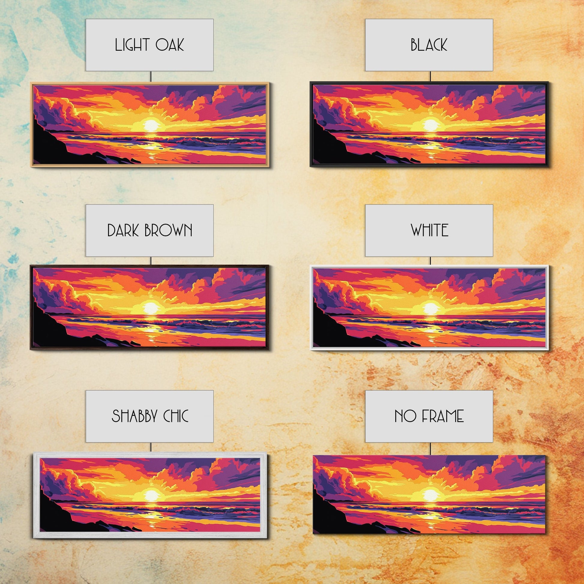 *Optional frames add a total of 1.5 inches to each dimension, for example a 10x20 canvas with a frame will be 11.5 by 21.5 inches total. All framed canvas are 1.5" total depth.