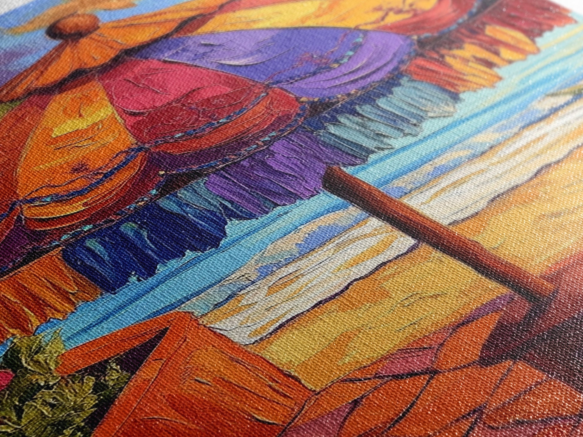 Most of our canvases are made in the USA, with the exception of canvases ordered with the light oak unstained frames, and any large canvases (24x48, 30x60, 16x48 and 20x60) ordered WITH a frame. These are temporarily made in and shipped from Europe, while we try to find a more consistent supplier in the USA.