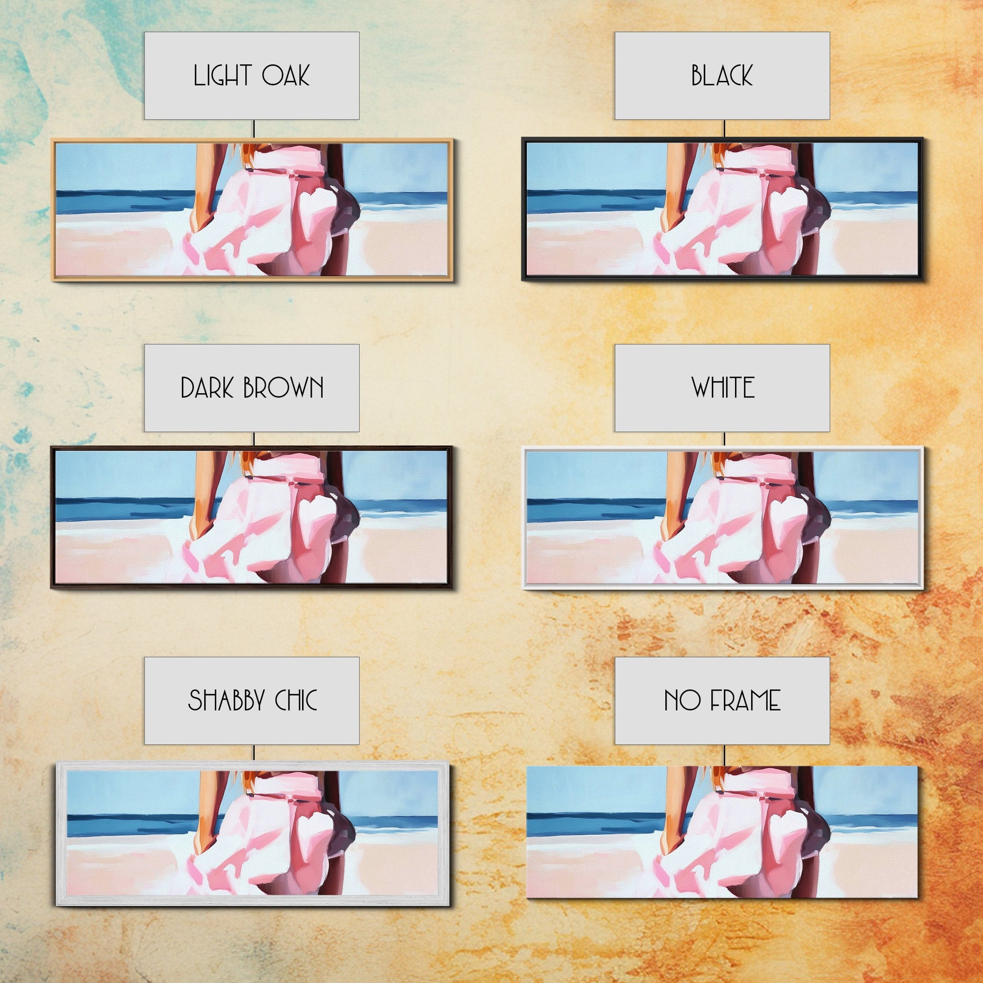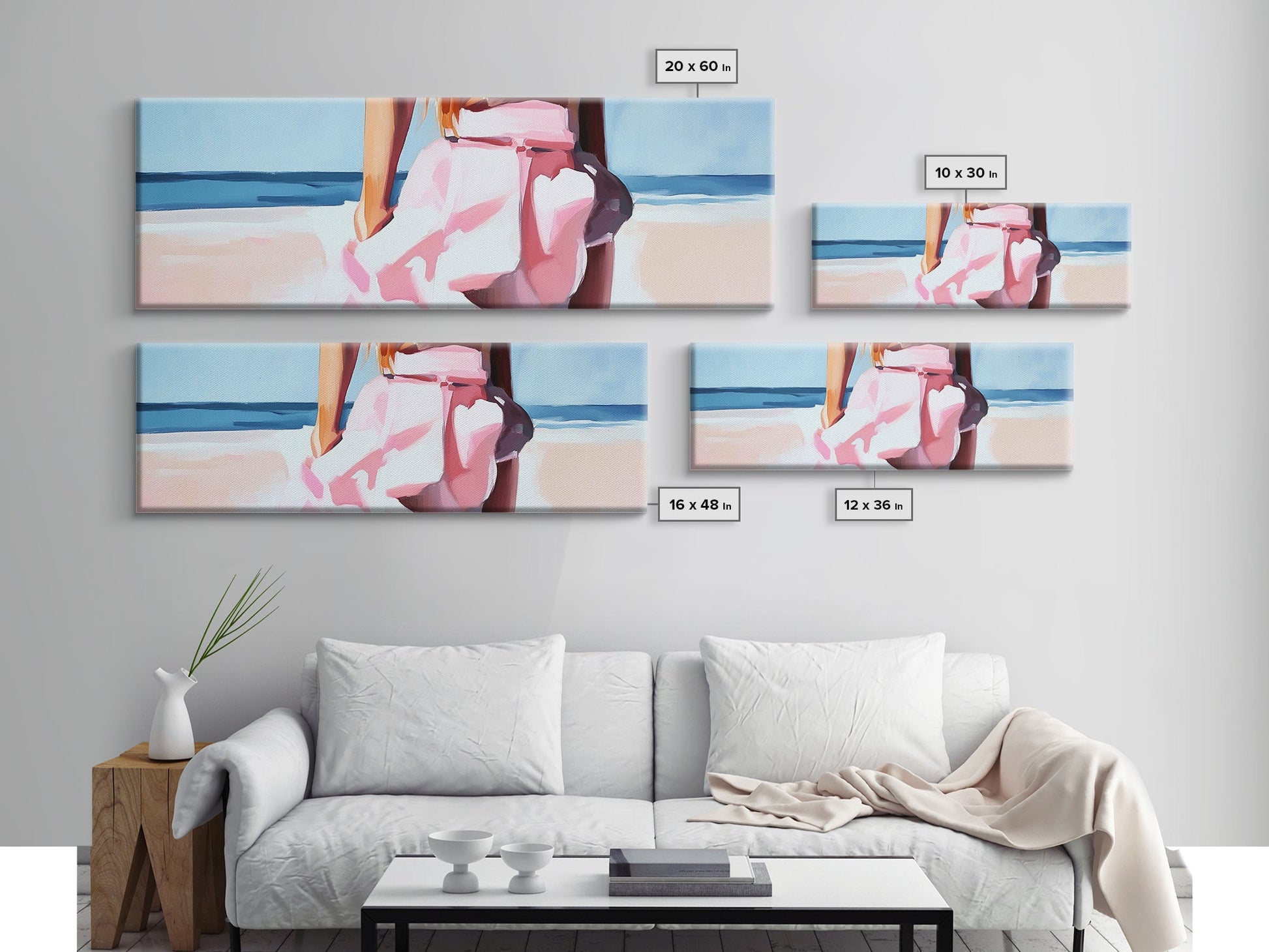 Beach Walk, Soft Waves, Feminine Coastal, Romantic Seascape, Framed Canvas Print, Boho Art, Bedroom Wall Art, Minimalist Aesthetic