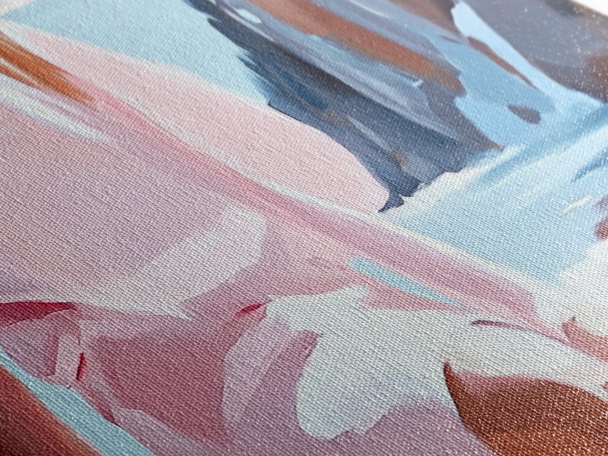 Most of our canvases are made in the USA, with the exception of canvases ordered with the light oak unstained frames, and any large canvases (24x48, 30x60, 16x48 and 20x60) ordered WITH a frame. These are temporarily made in and shipped from Europe, while we try to find a more consistent supplier in the USA.