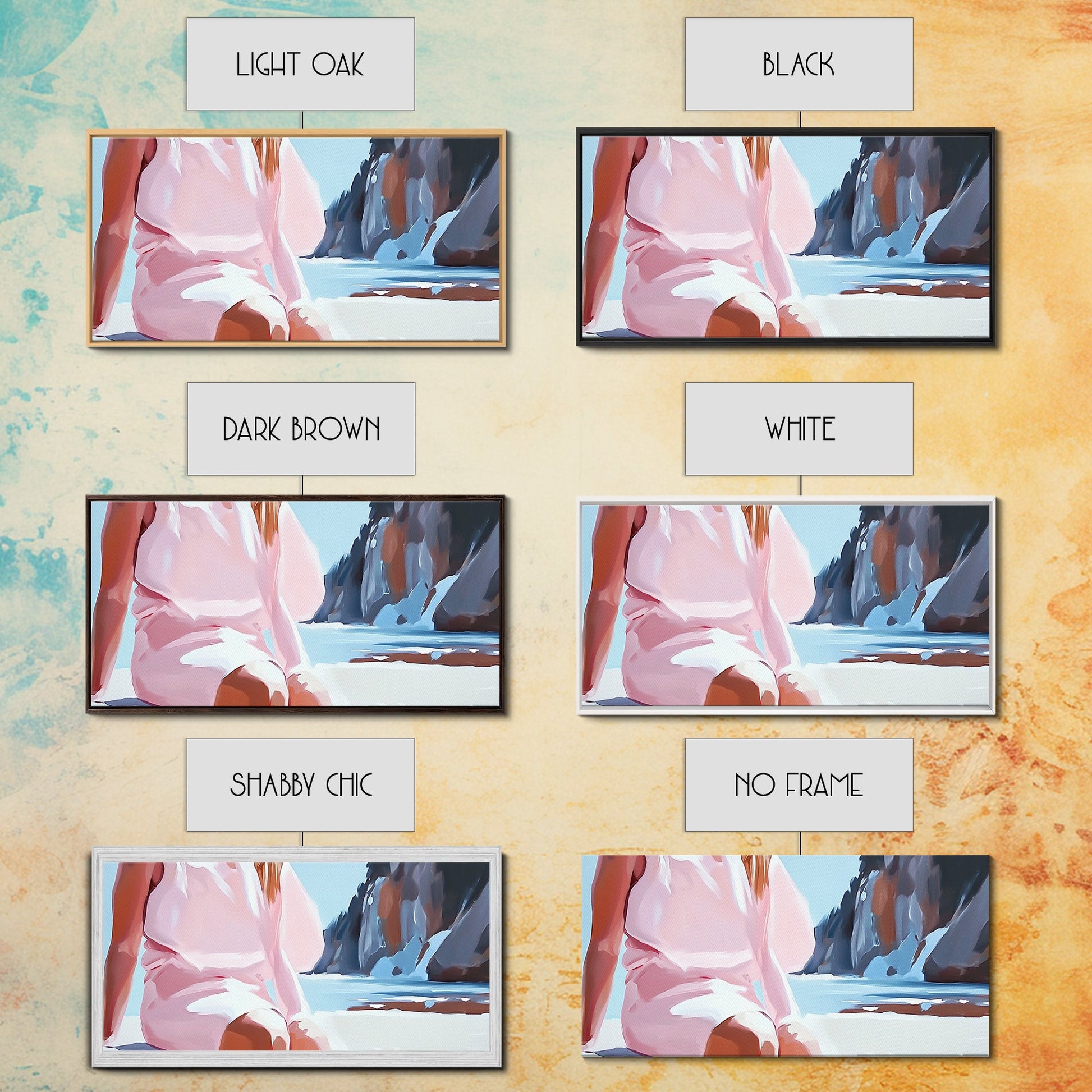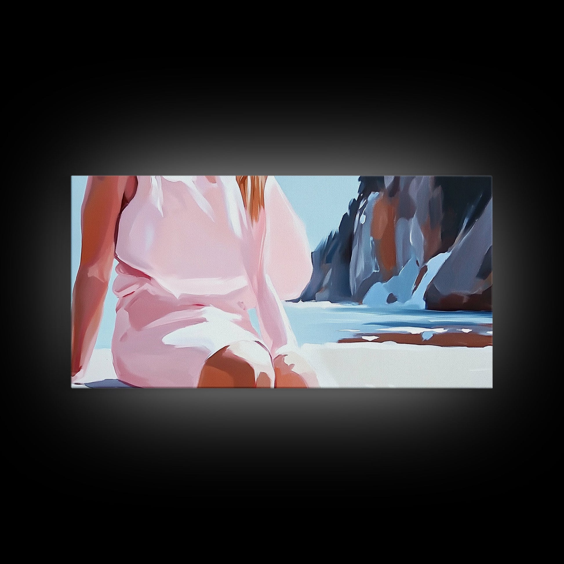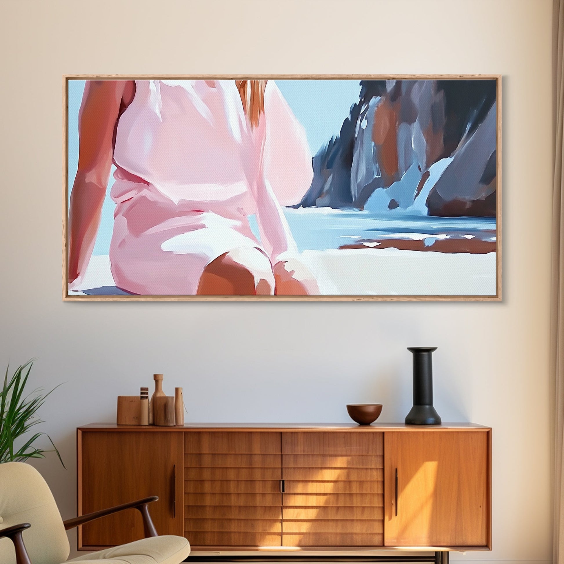 Beach Woman, Summer Aesthetic, Ocean Fashion, Boho Wall Art, Framed Canvas Print, Coastal Beauty, Modern Beach House Decor, Minimalist Artwork