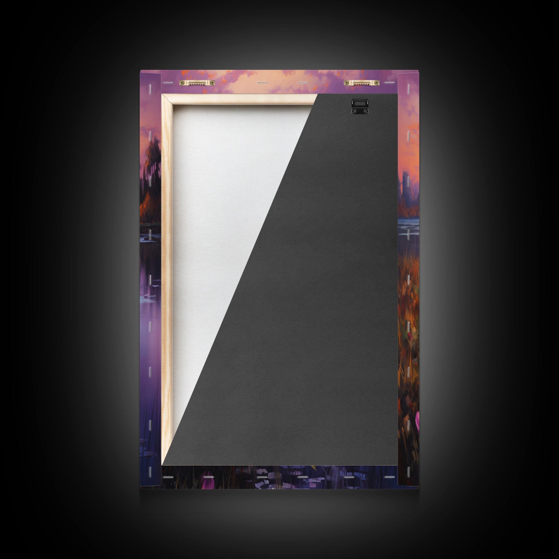 Beautiful 3 Piece Wall Art, Framed Canvas Print, 3 Piece Set, Lake House Decor, Sunset Over The Purple Marsh, Above Sofa Art