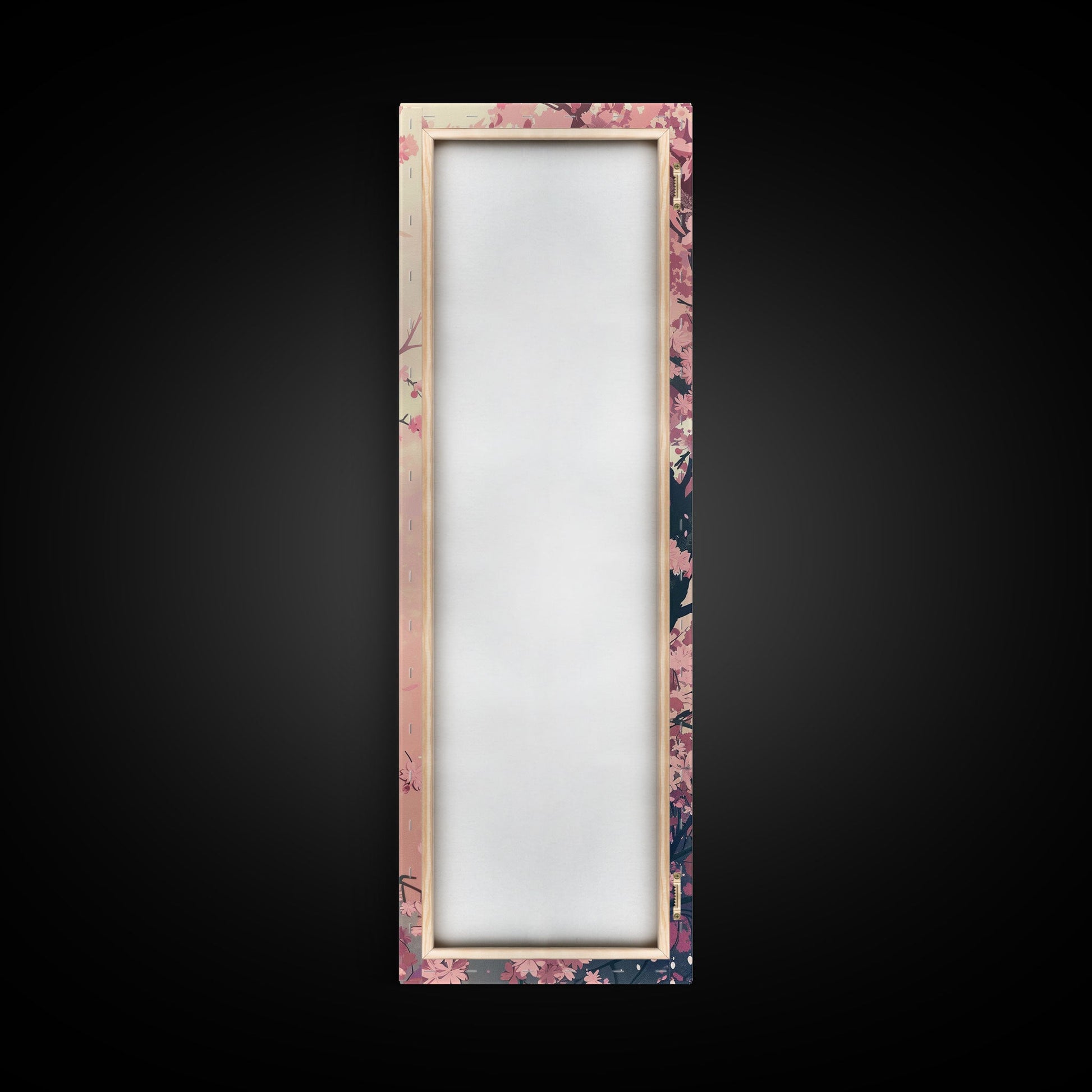 Beautiful Cherry Blossoms Blooming On Tree Branch Against Soft Pastel Background Captured Tall Framed Canvas Print Floral Home Decor