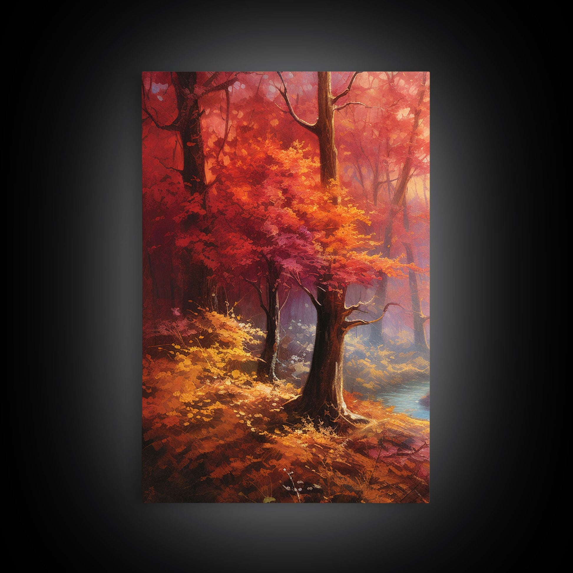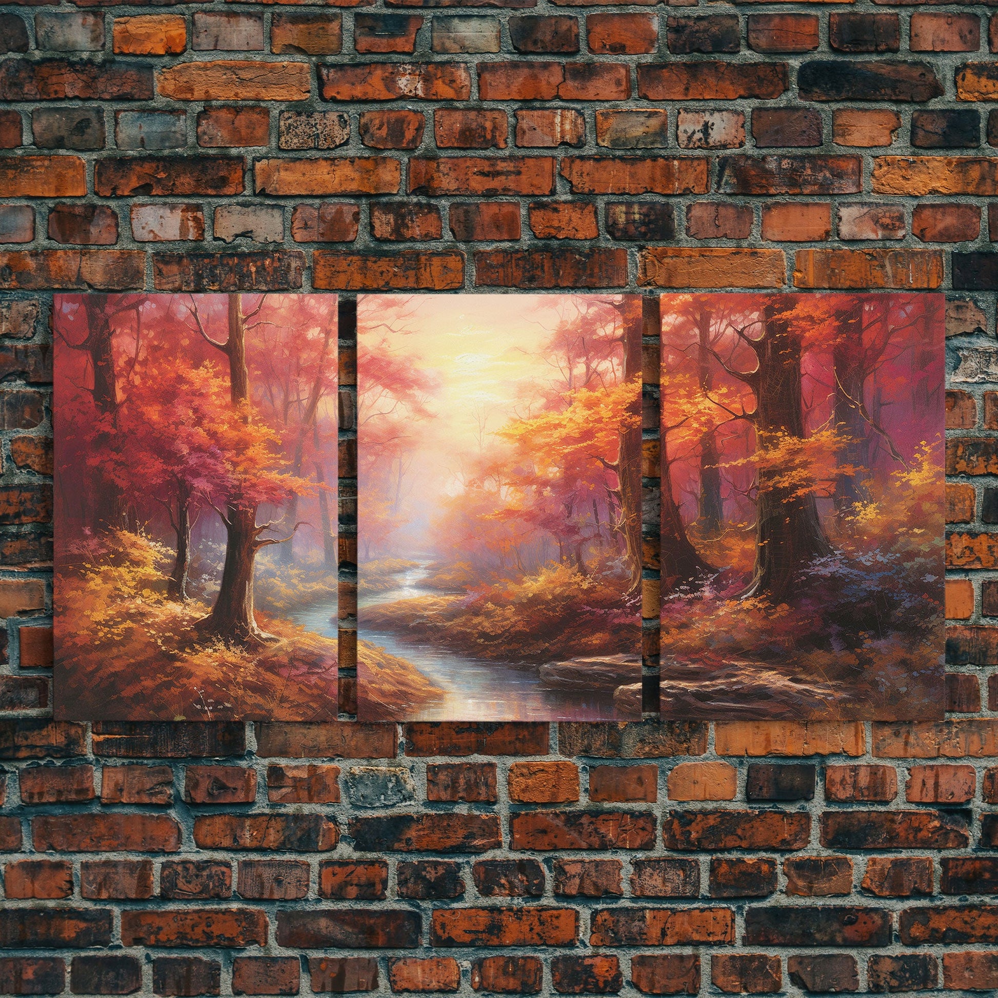 Beautiful Fall Centerpiece Art, Framed Canvas Print, 3 Piece Art, Thanksgiving Centerpiece, Above Sofa Art, Fall Finds, Landscape Painting