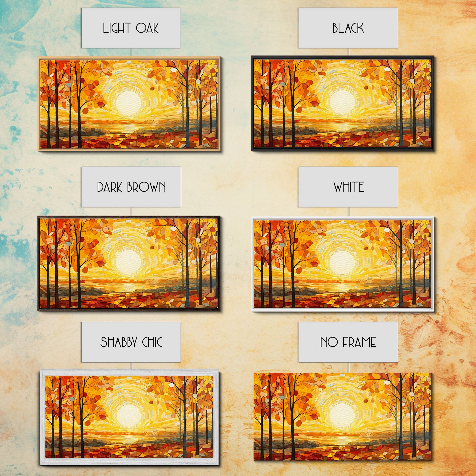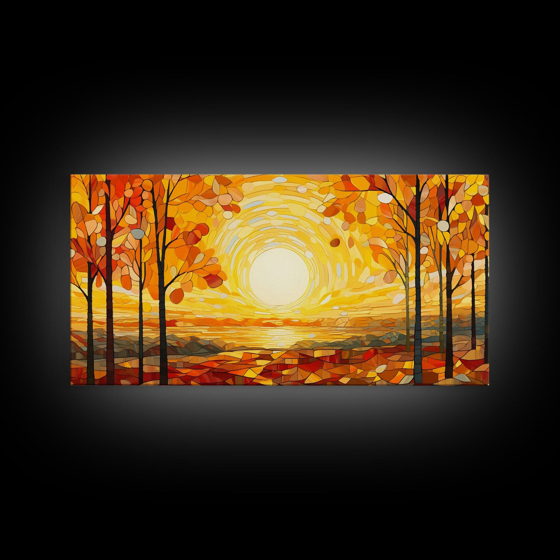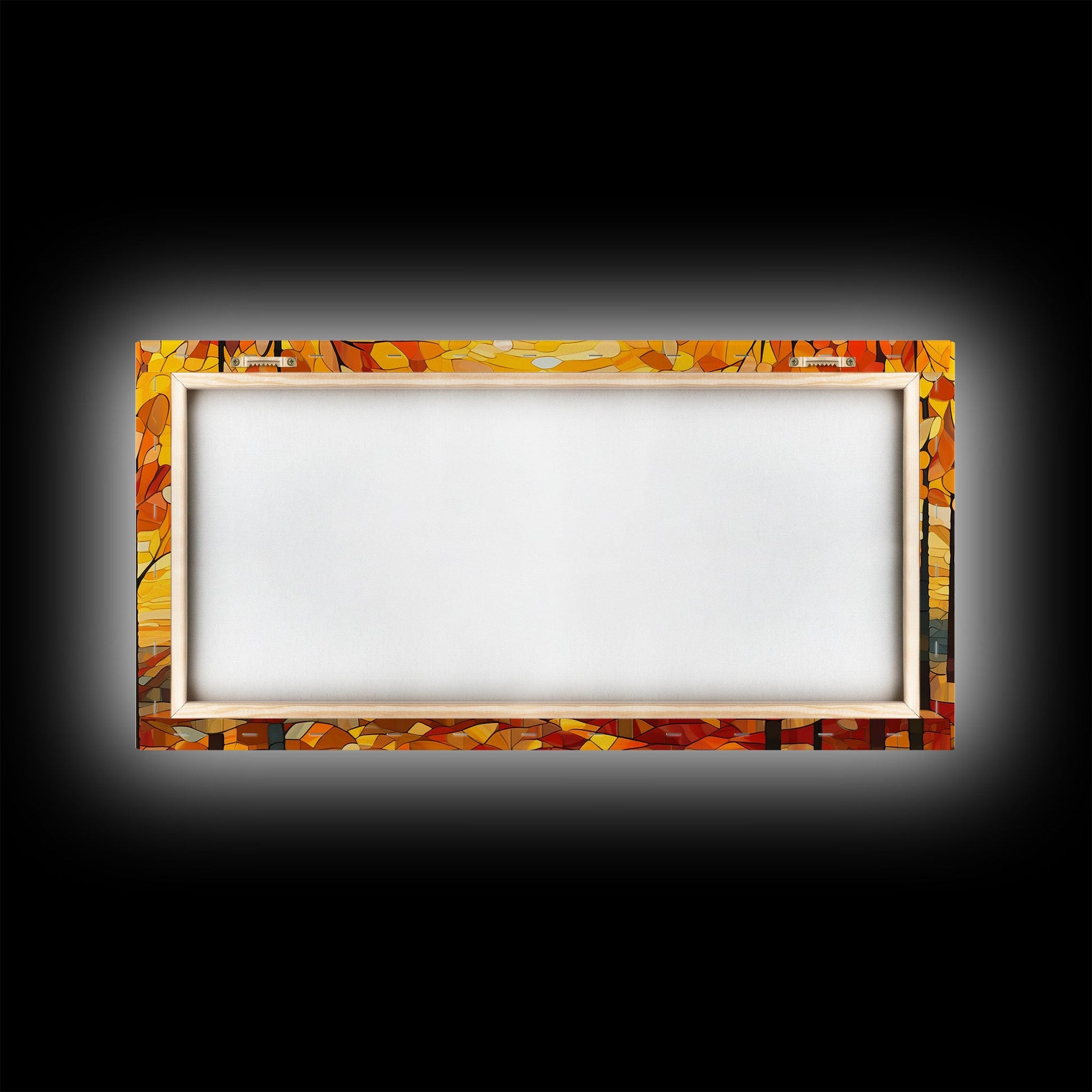 Beautiful Fall Decor Centerpiece Framed Canvas Print, Autumn Decor, Fall Wall Art, Above Mantle Wall Art, Stained Glass Style