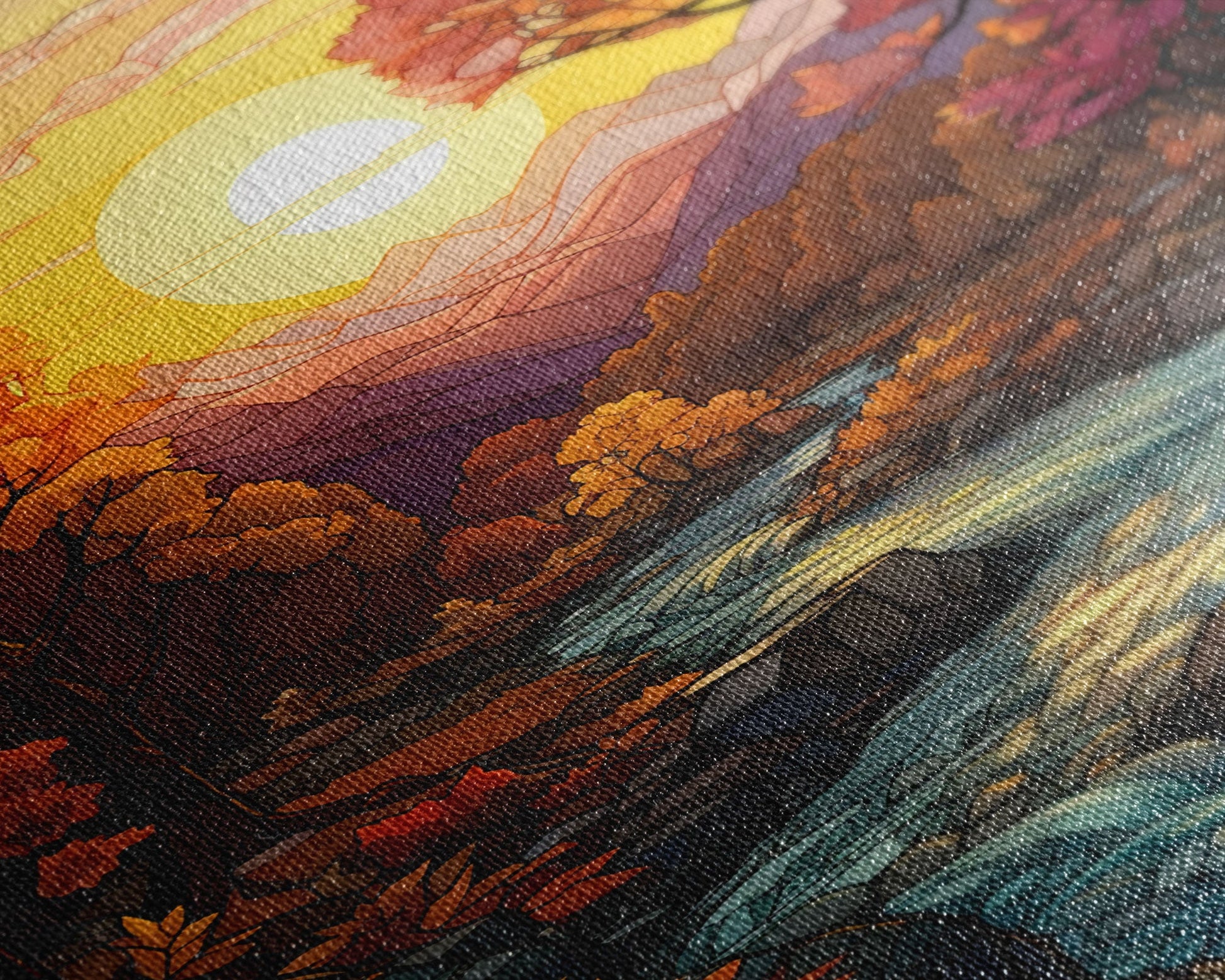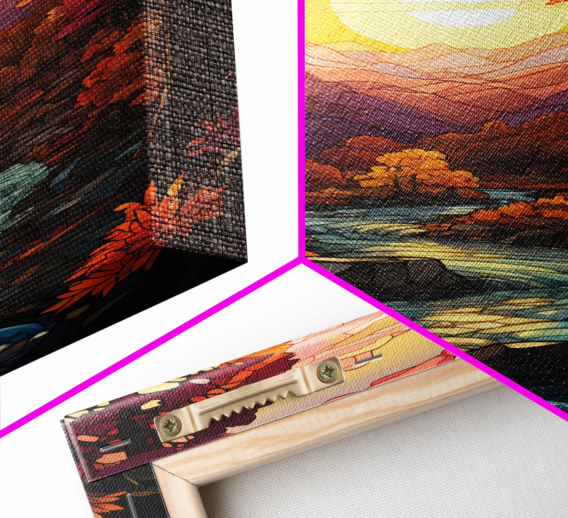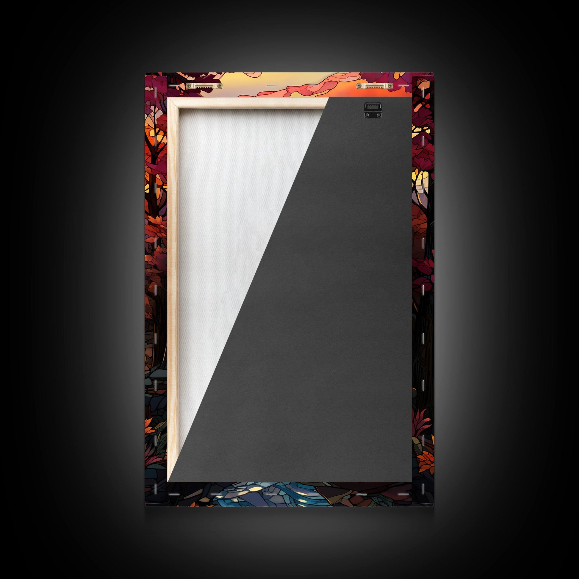 Beautiful Fall Decor, Framed Canvas Print, Mosaic / Stained Glass Style Painting, Gliclee Print, Autumn Decor, Thanksgiving Decorations