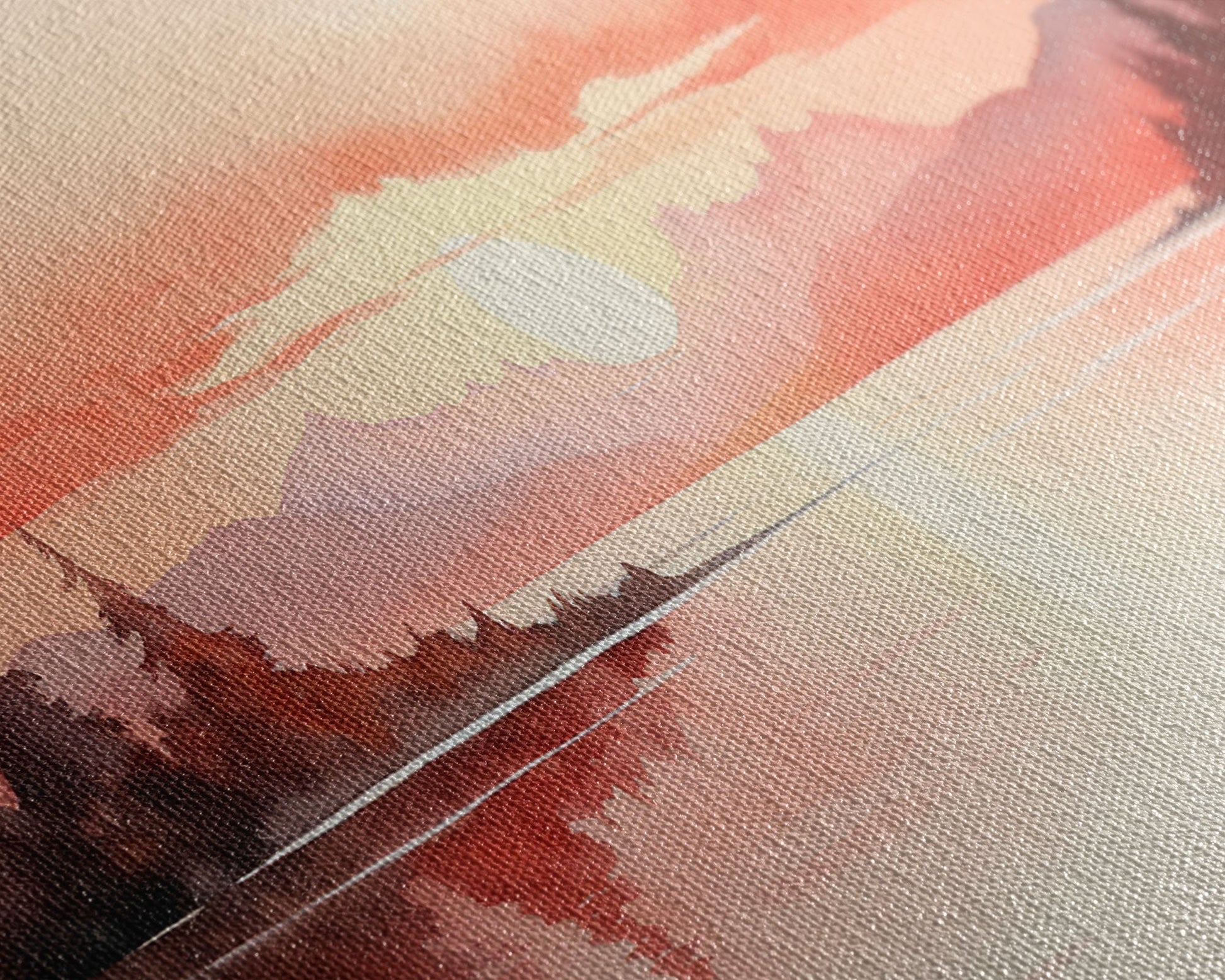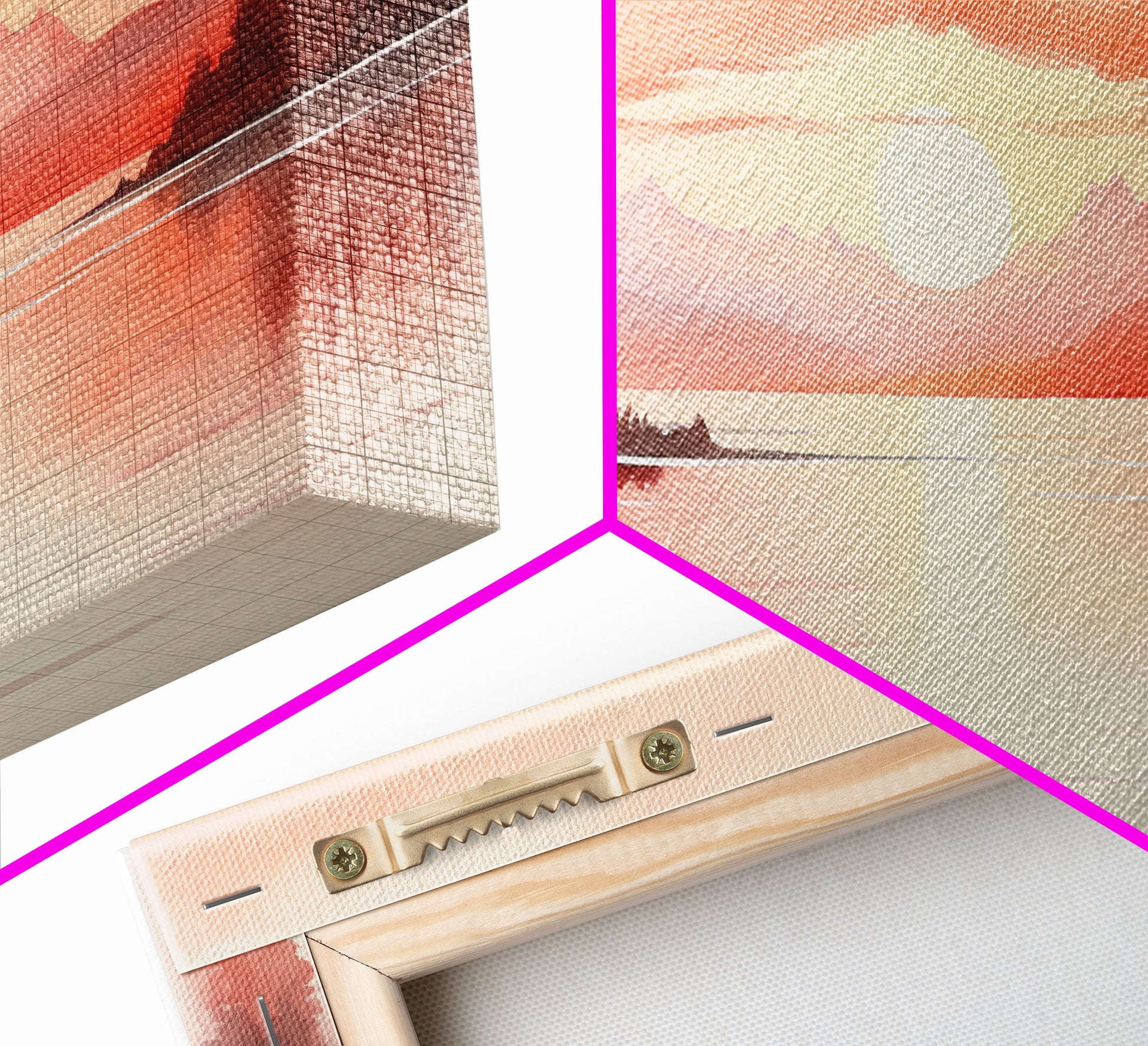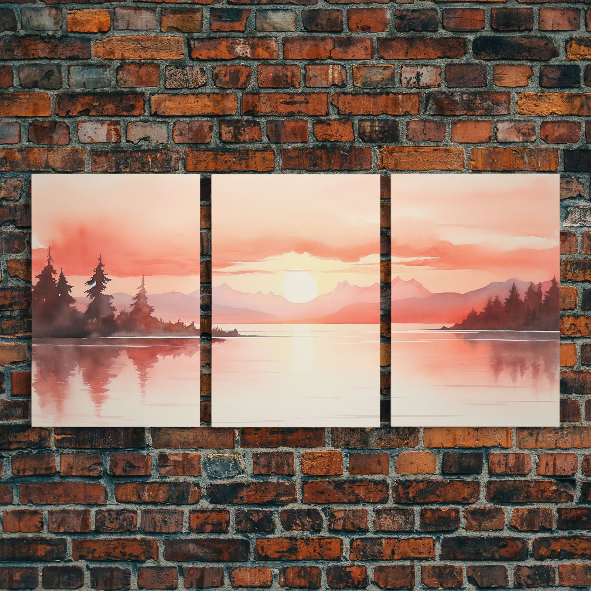 Beautiful Red Lake Sunset 3 Piece Framed Canvas Print Set, Above Sofa Art, Living Room Decor, Beautiful Wall Art, Watercolor Painting