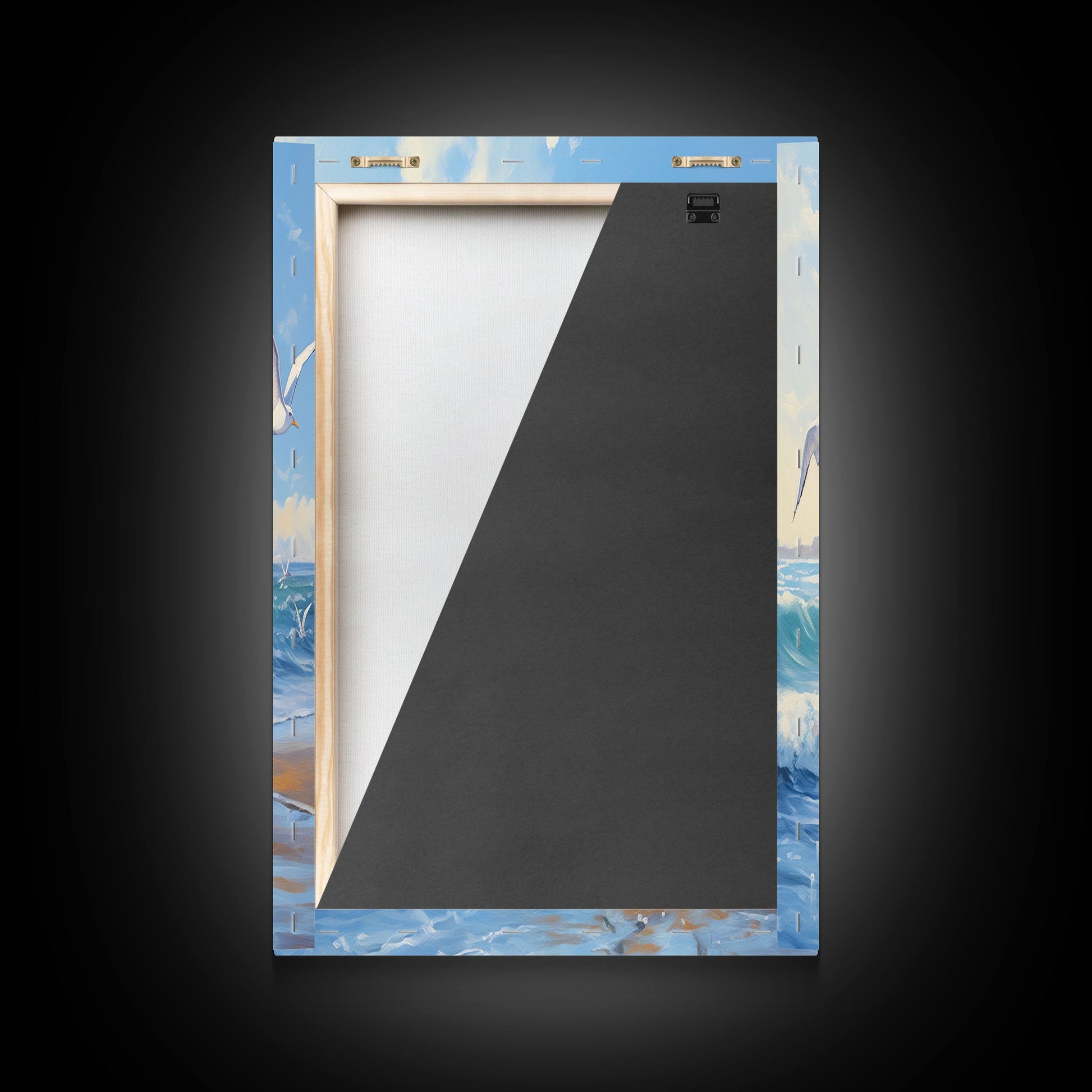 Beautiful Seagulls Over An Ocean Beach At Sunset 3 Piece Canvas Print Wall Art, Above Sofa Art, Modern Art, Minimalism Lakehouse Decor