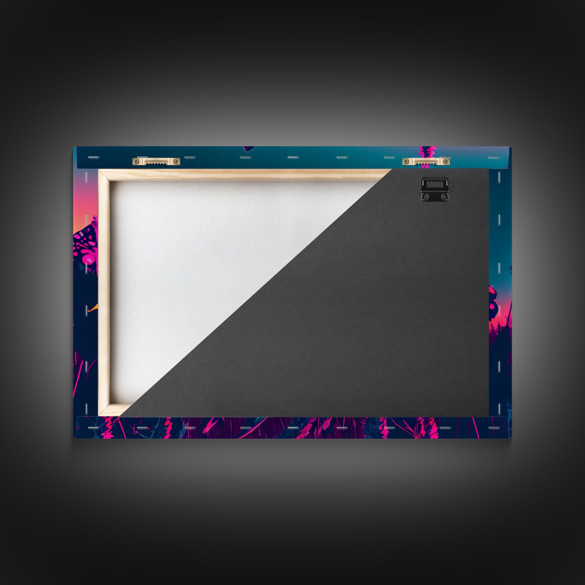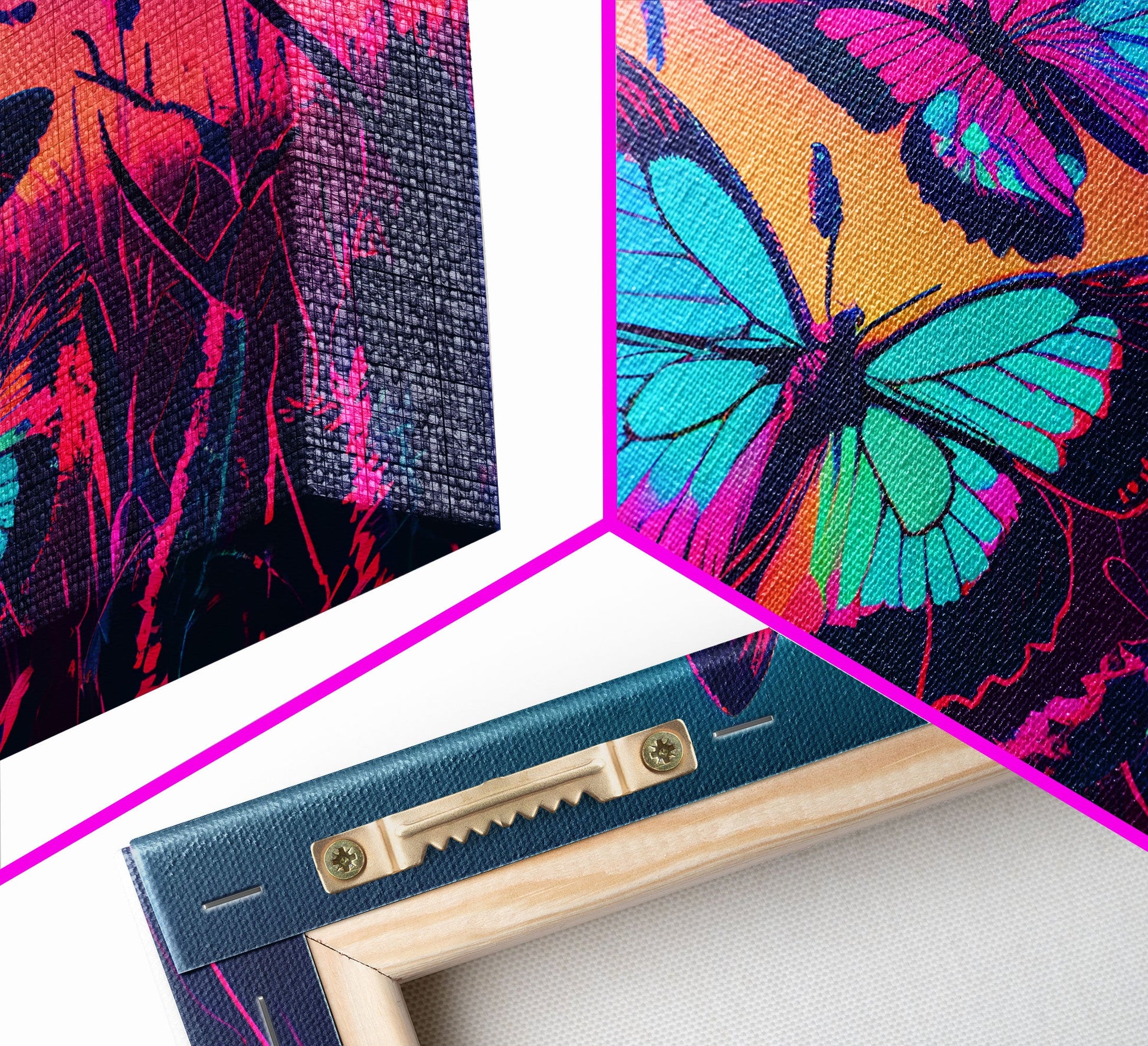 Beautiful turquoise butterfly art, vaporwave aesthetic pastel art, framed canvas print, synthwave art