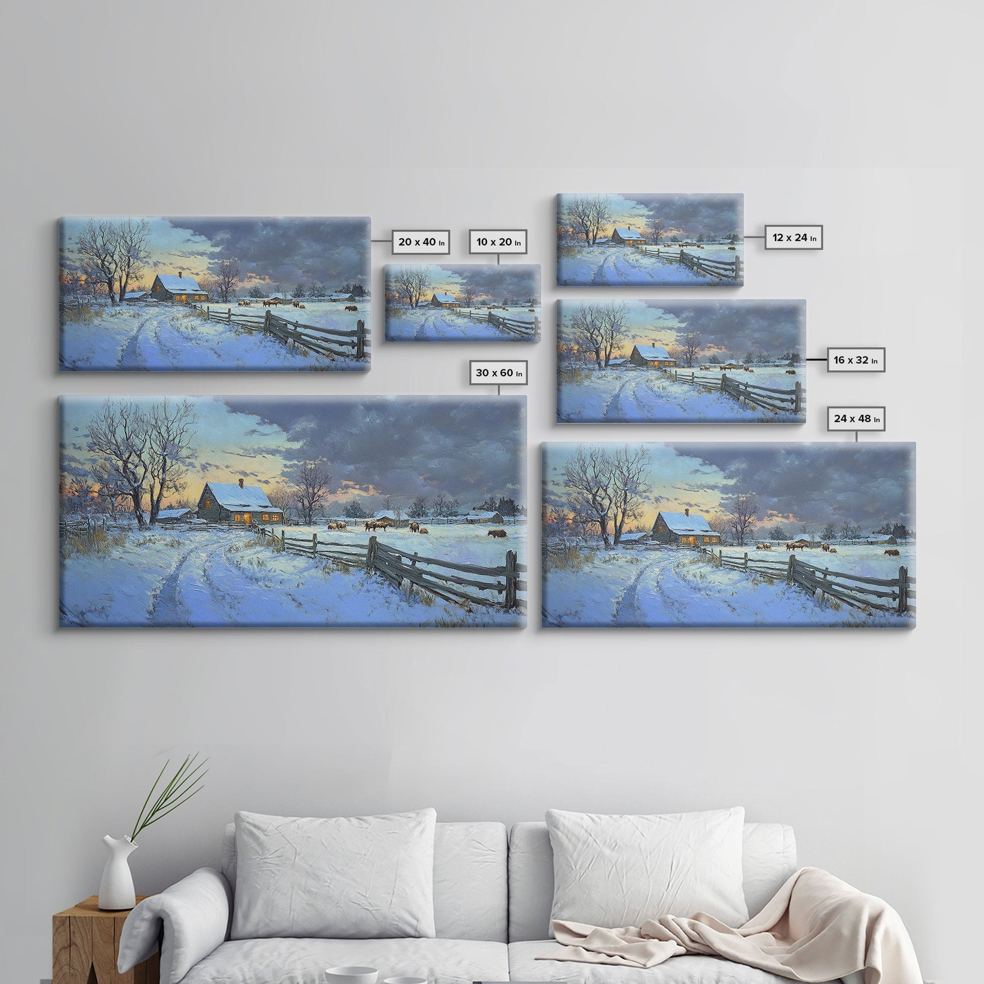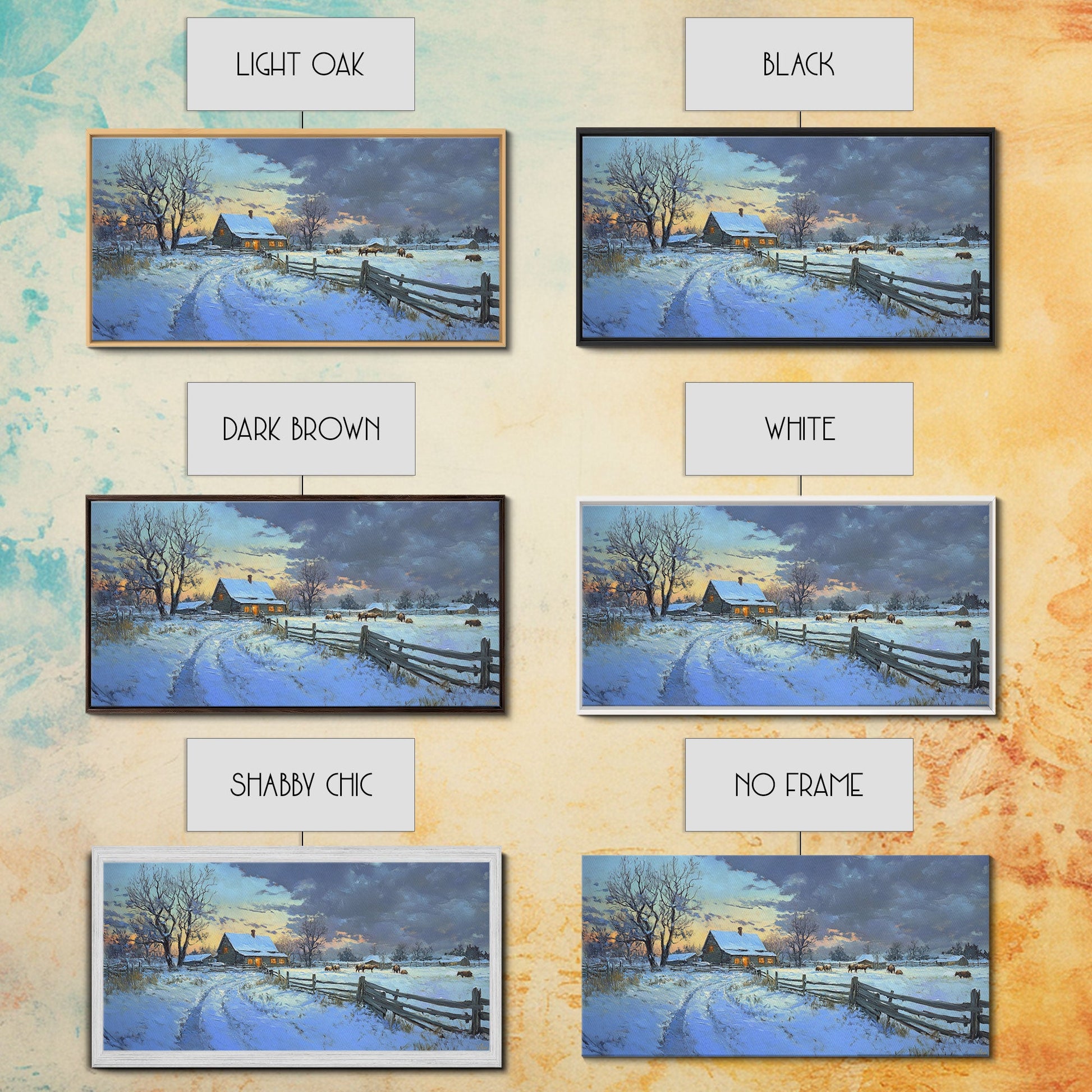 Beautiful Winter Snowy Farm Framed Canvas Print Rustic Christmas Decor, Christmas Wall Art and Holiday Art Prints, Gift Home Decor