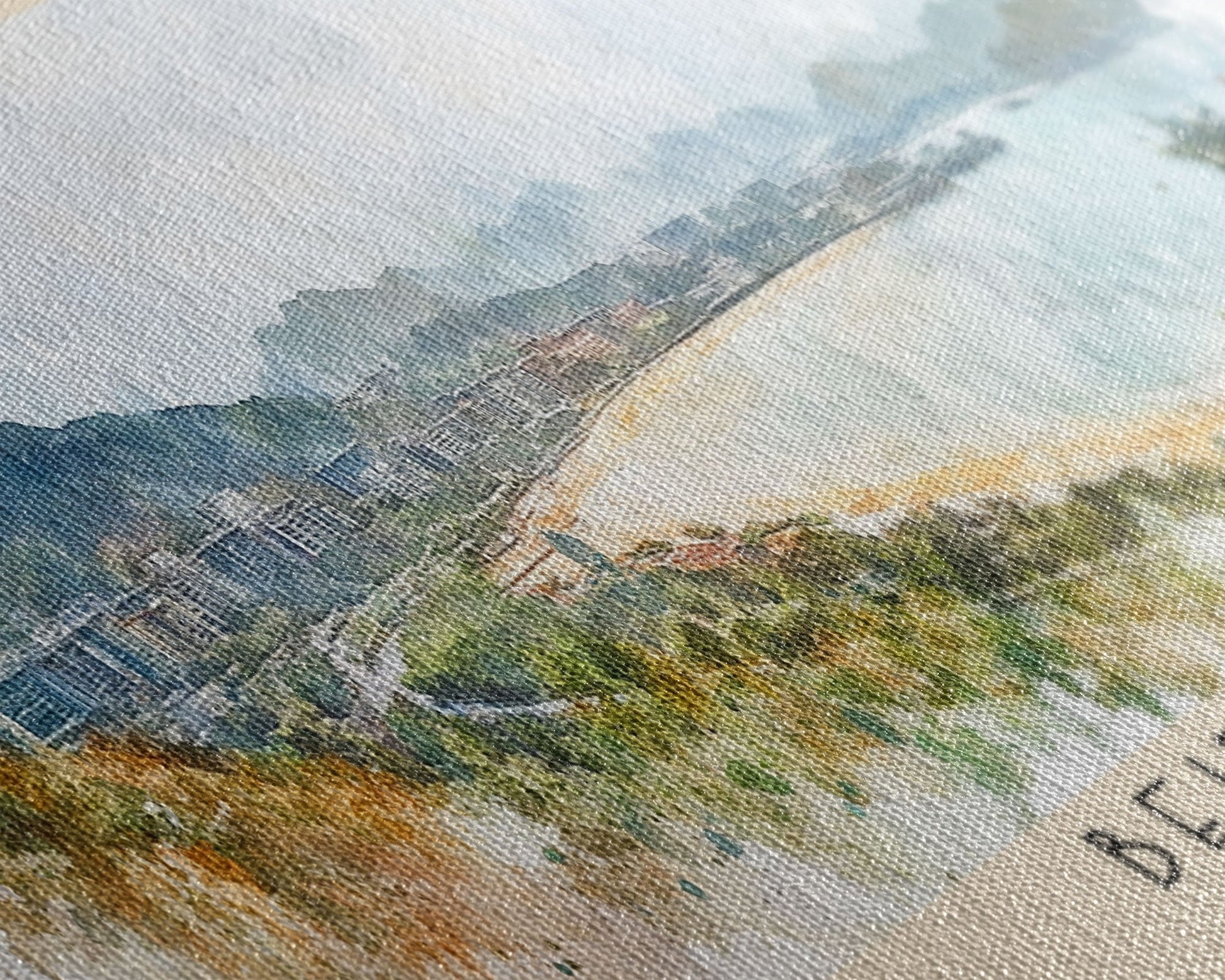 Beidaihe, China Watercolor Beach Print, Vacation Gift, China Wall Art, Framed Canvas Print, Framed Beach Painting
