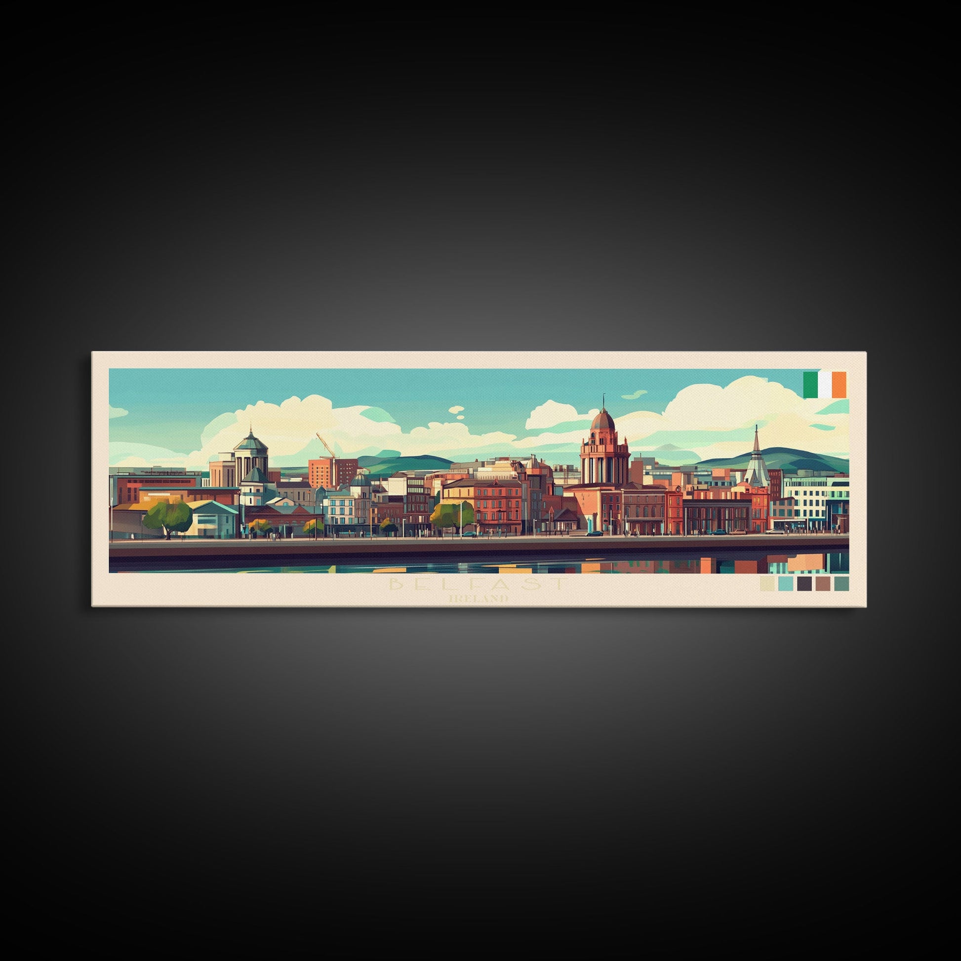Belfast, Ireland Travel Poster Panoramic Canvas Print, Belfast, Ireland Painting, Ireland Art, Belfast Travel Art, Guest Room Painting
