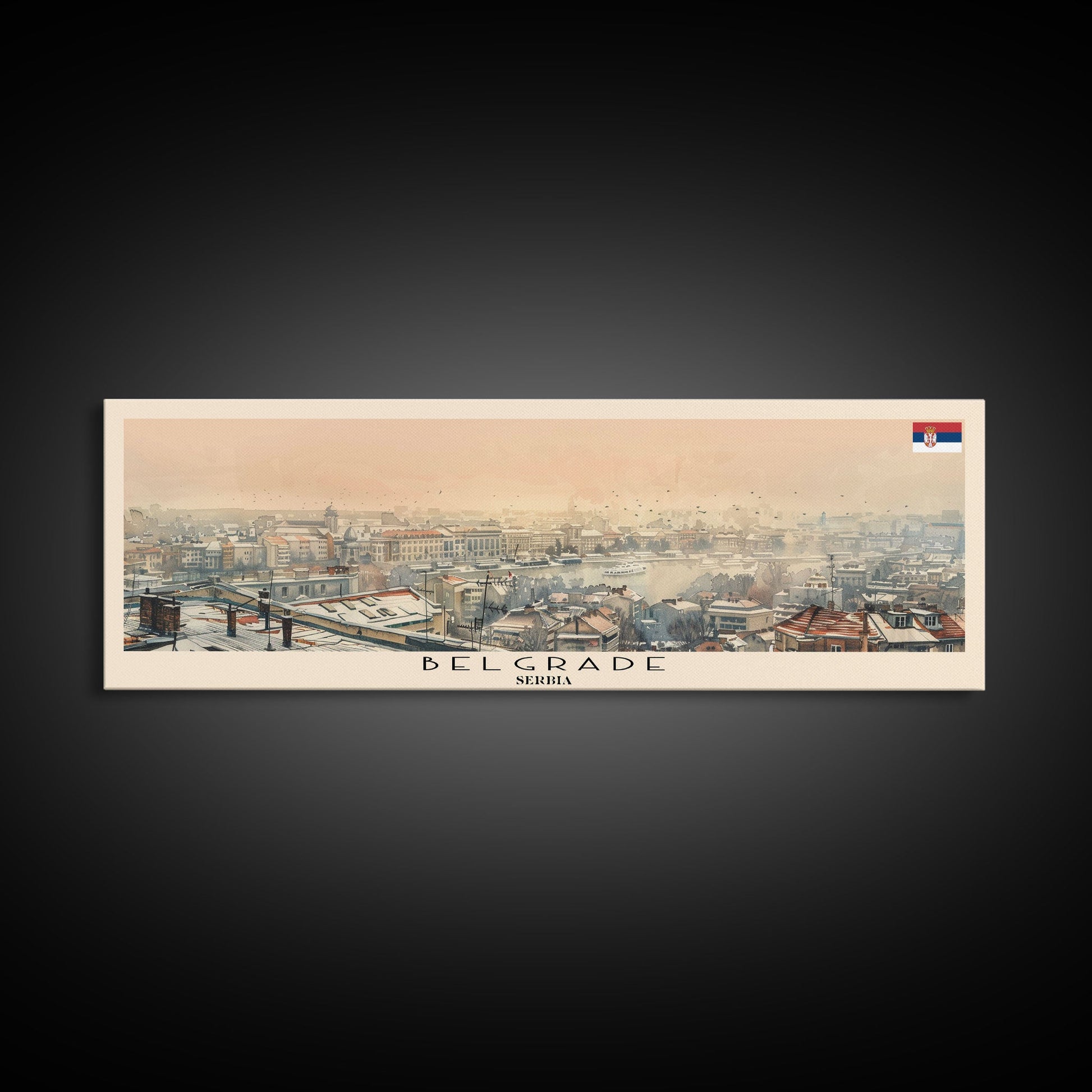Belgrade Serbia Panoramic Travel Poster, Framed Canvas Print or Metal Wall Art, Travel Art, Home Decor, Panoramic Painting, Midcentury Art