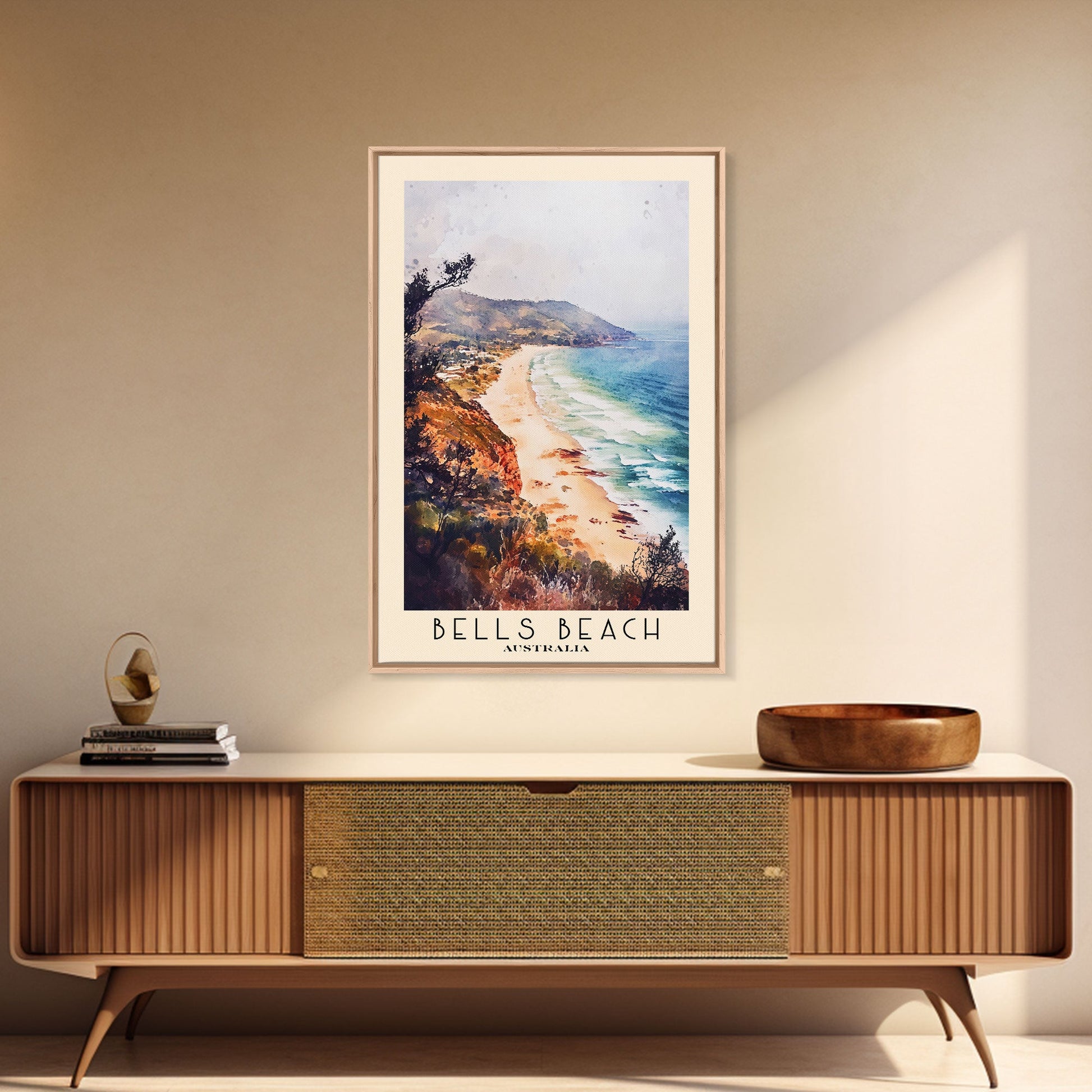 Bells Beach, Australia Watercolor Beach Print, Vacation Gift, Australia Wall Art, Framed Canvas Print, Framed Beach Painting
