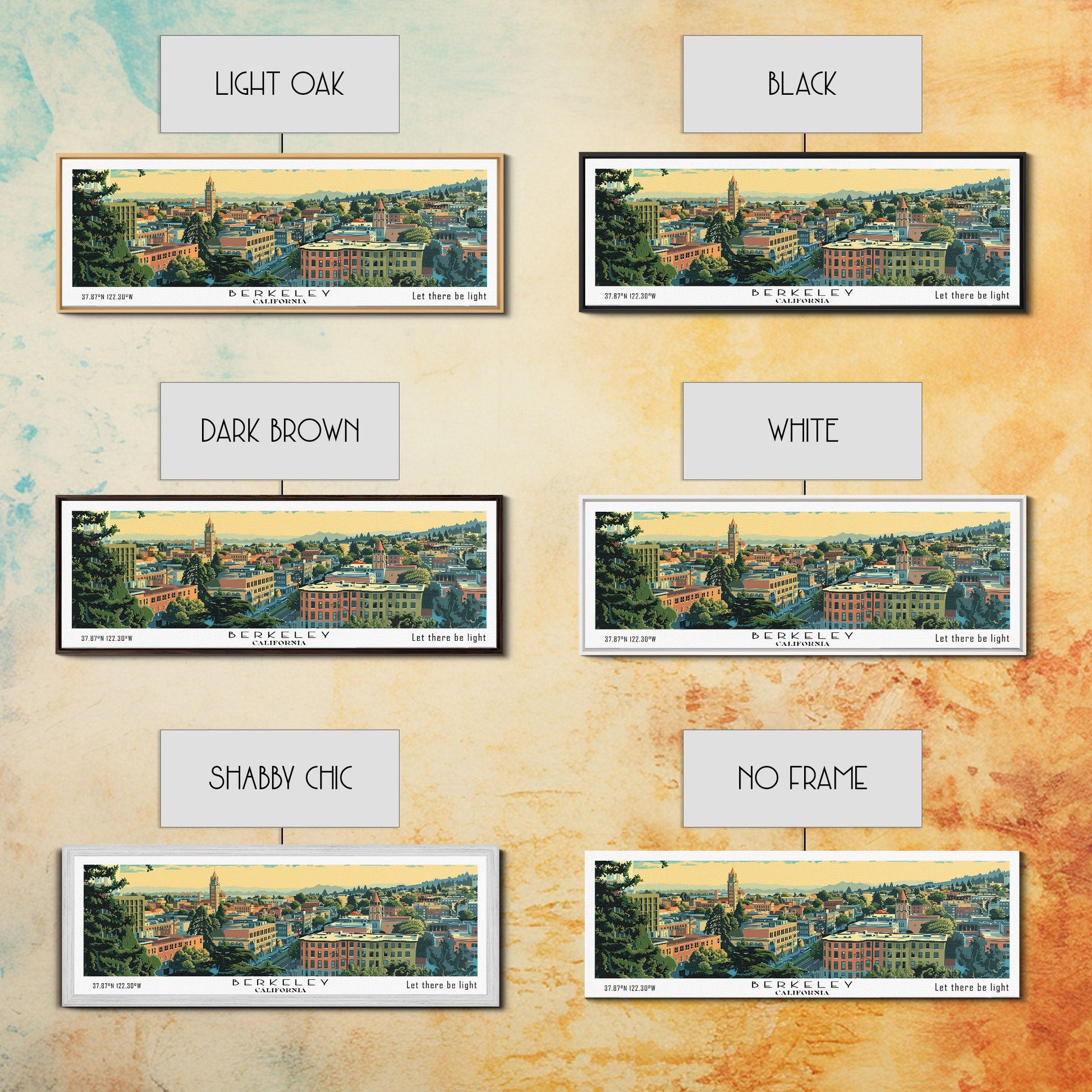 Berkeley California Panoramic Painting, Mid Century Modern Framed Canvas Print, Retro Pop Art Travel Poster, Home Decor, City Print