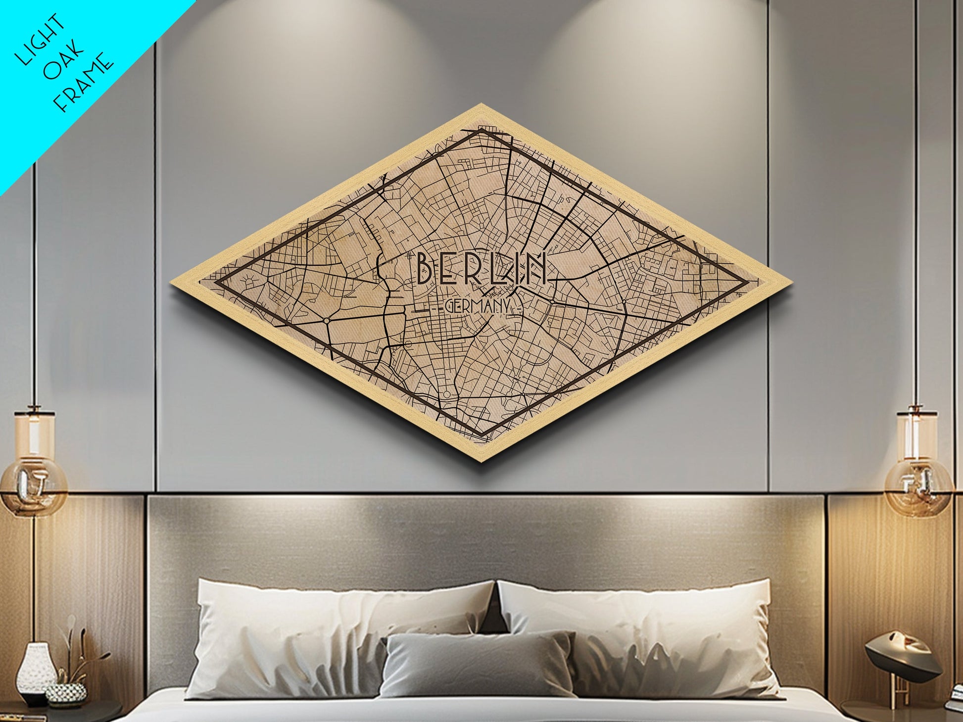 Berlin - Germany Diamond Shaped City Map, Custom Diamond Shaped Wall Art, City Map Canvas
