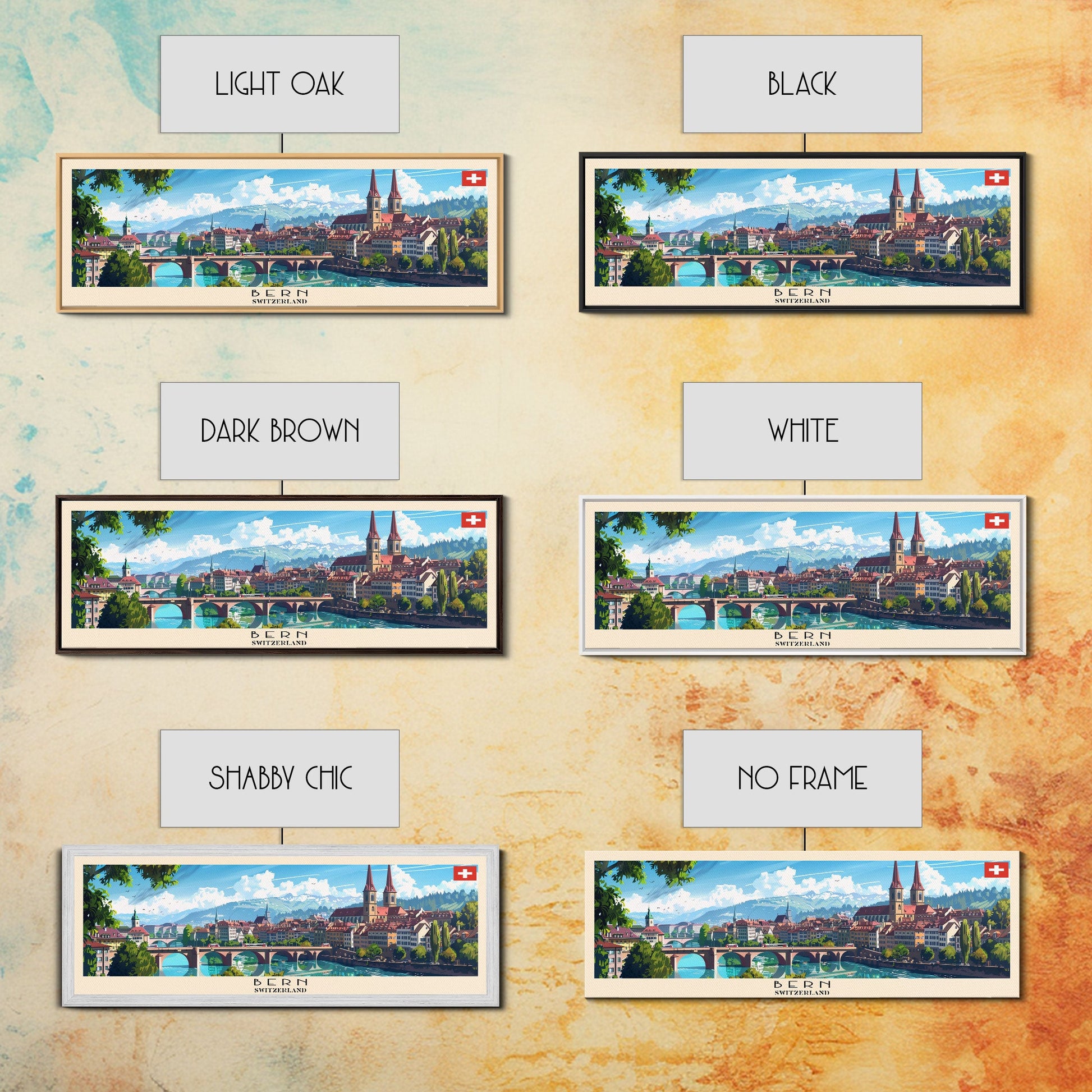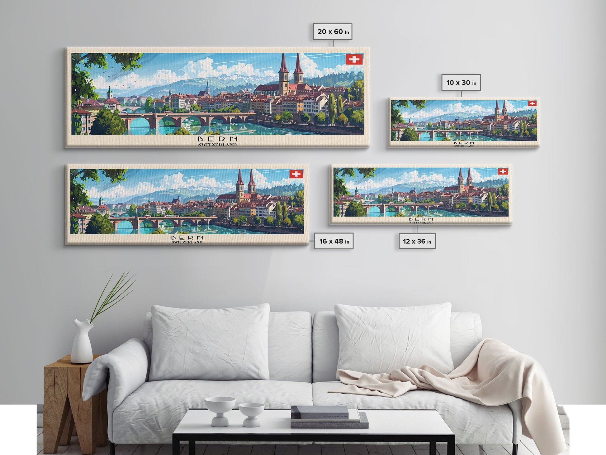 Bern Switzerland Travel Art, City Art, Framed Canvas Print or Metal Wall Art, Europe Travel Poster, Panoramic Wall Art, Extra Wide Wall Art