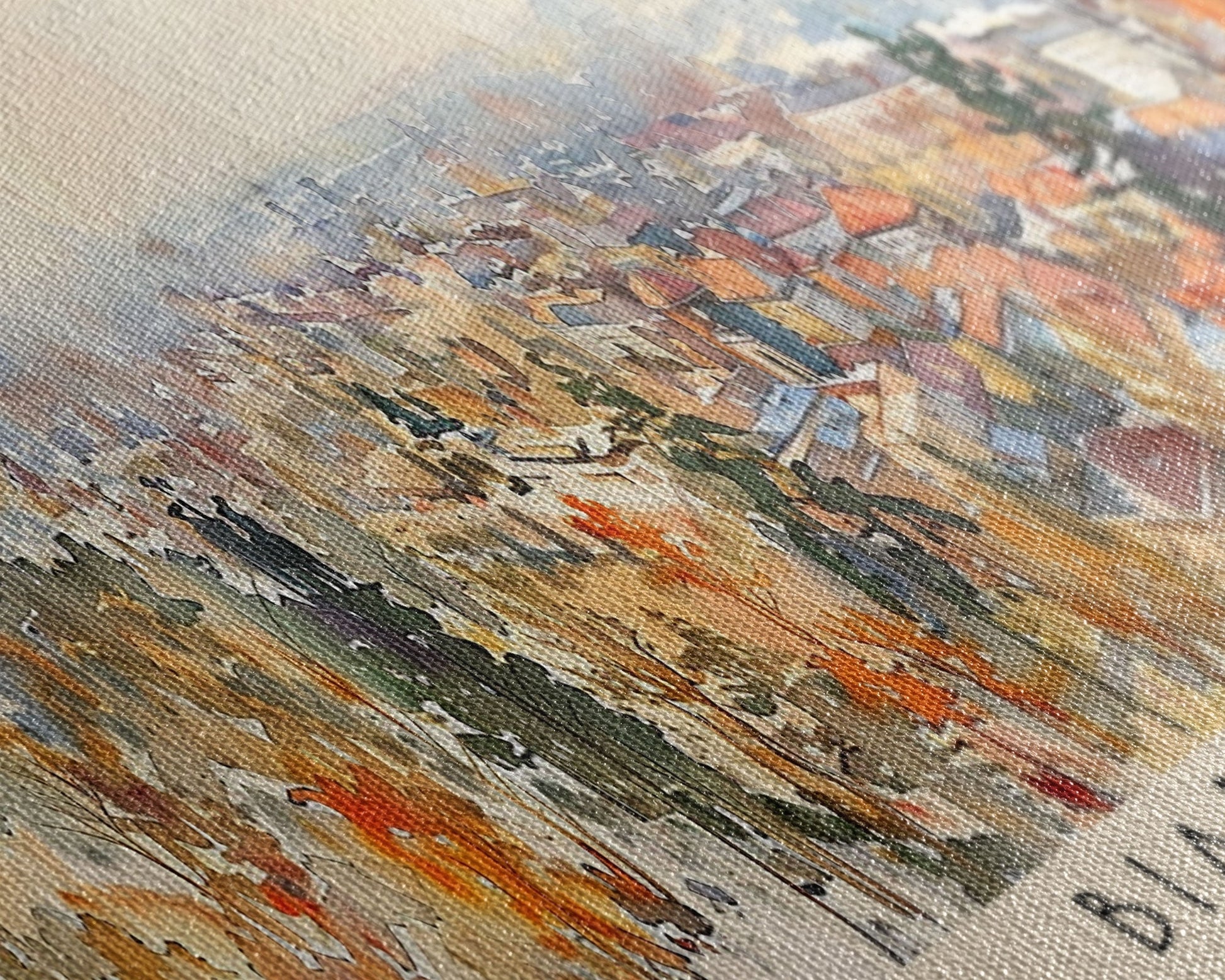 Most of our canvases are made in the USA, with the exception of canvases ordered with the light oak unstained frames, and any large canvases (24x48, 30x60, 16x48 and 20x60) ordered WITH a frame. These are temporarily made in and shipped from Europe, while we try to find a more consistent supplier in the USA.