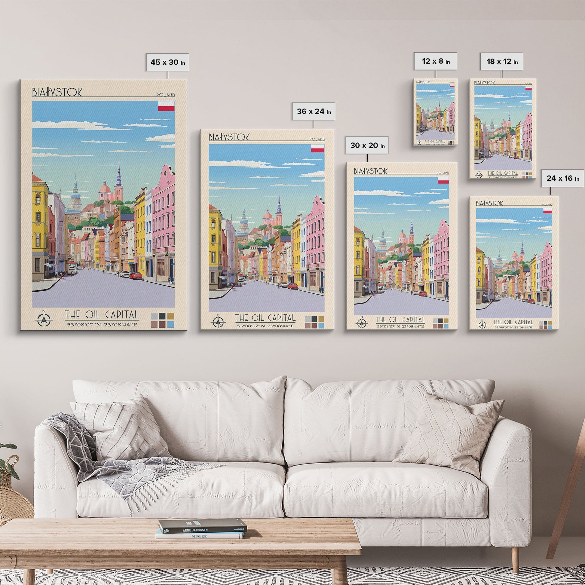 Białystok Poland Travel Poster Framed Canvas Print, Midcentury Modern Art, Pop Art Wall Decor, Home Decor, Vacation Gift, Living Room Art