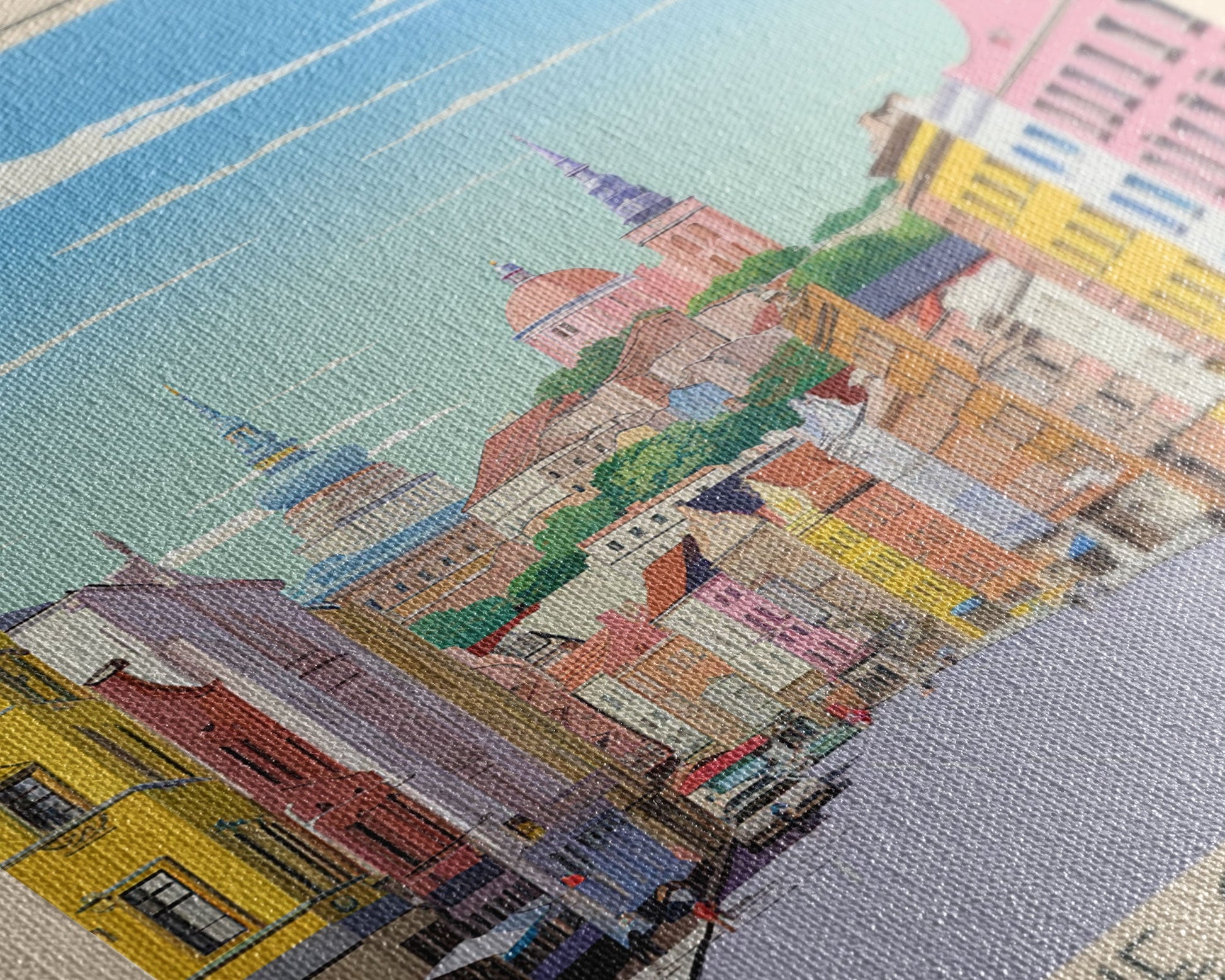 Most of our canvases are made in the USA, with the exception of canvases ordered with the light oak unstained frames, and any large canvases (24x48, 30x60, 16x48 and 20x60) ordered WITH a frame. These are temporarily made in and shipped from Europe, while we try to find a more consistent supplier in the USA.