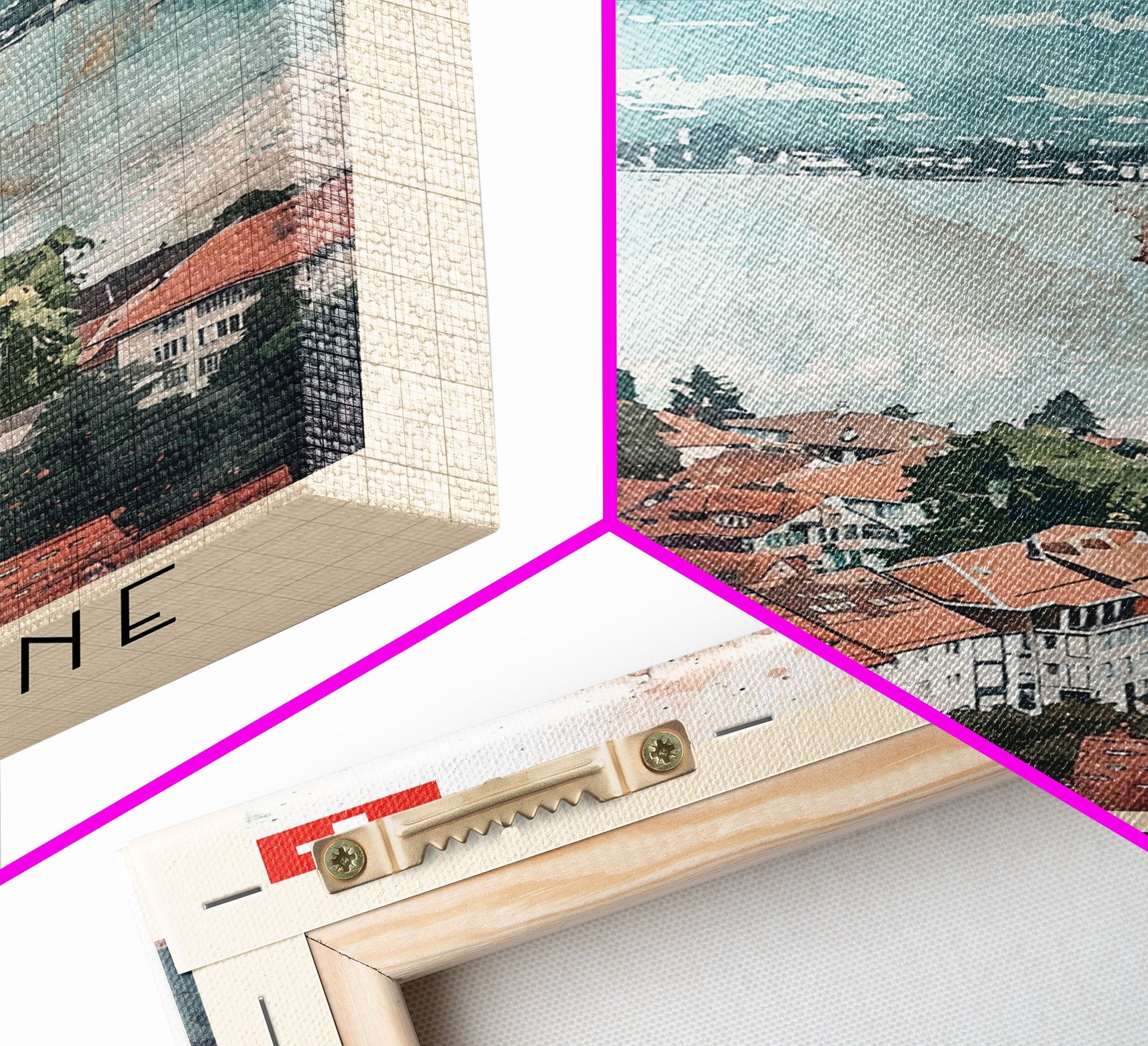 Biel/Bienne Switzerland Travel Poster Framed Canvas Print, Watercolor Painting, Wall Art, Home Decor, Scenic Travel Print
