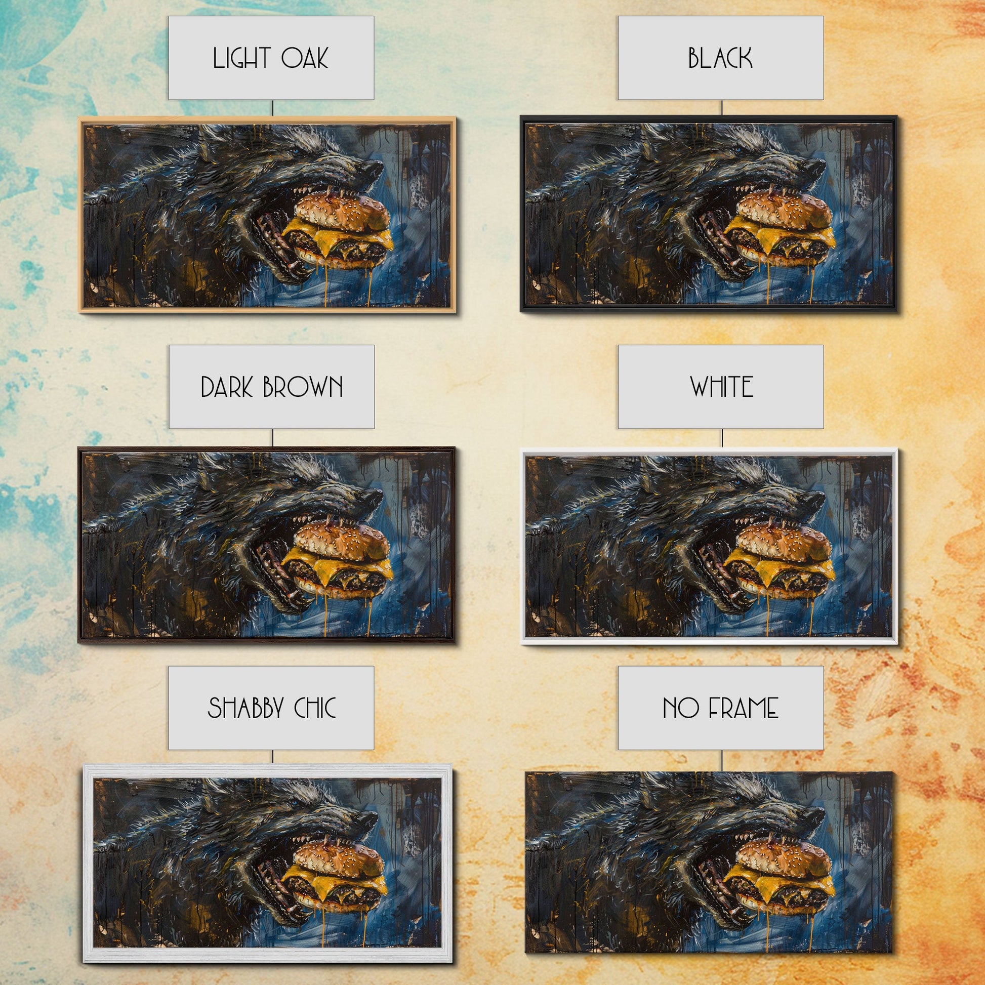 Big Ol Werewolf Having A Cheese Burger - Framed Canvas Print - Funny Halloween Art