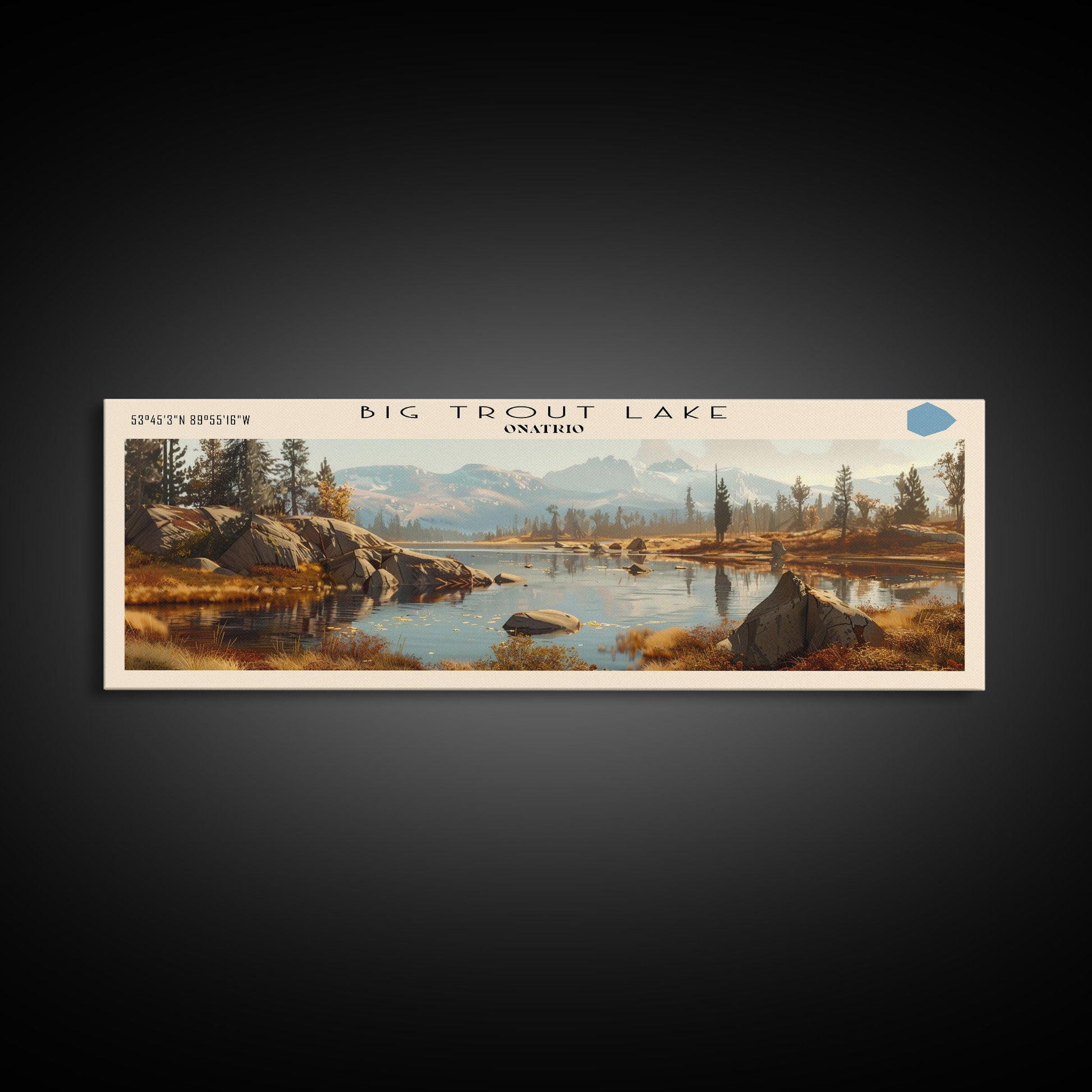 Big Trout Lake Framed Canvas Print, Lake House Art, Panoramic Scenic View, Travel Poster, Minimalist Wall Art, Lake Painting